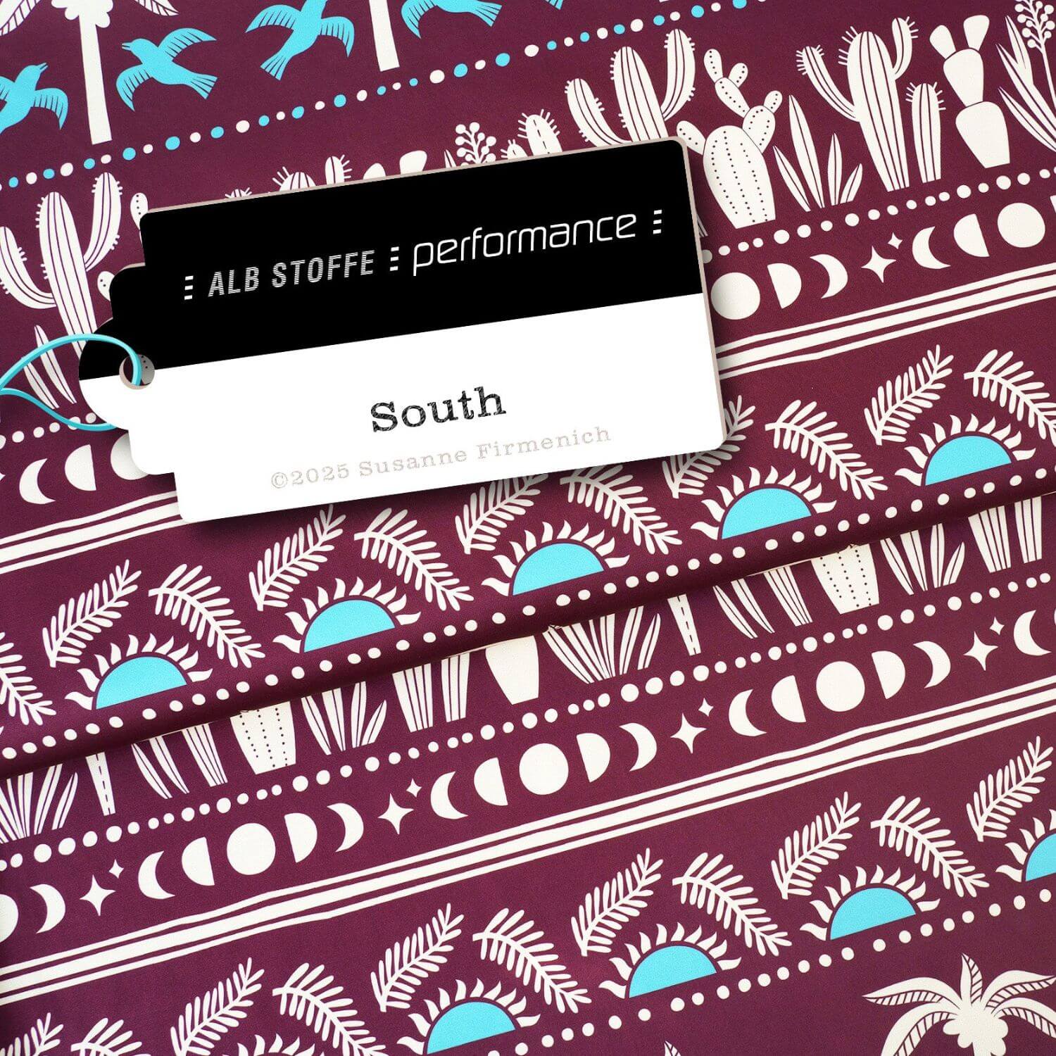 Combineer South Bordeaux met bijpassende effen stoffen of leggings in Bordeaux, crème of rosé en creëer je eigen perfect gecoördineerde sportoutfit - van comfortabele yogabroeken tot trendy crop tops.