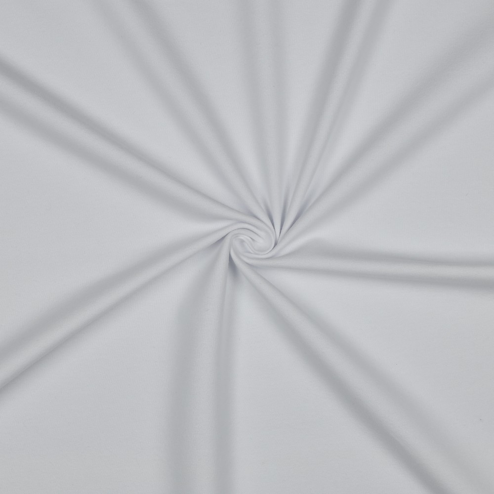 Deze knusse zachte Soft Sweat in stralend uni-wit is een echte allrounder voor je naai-projecten. Het oppervlak voelt elegant glad en gelijkmatig aan, de stof valt soepel en voelt prettig zacht op de huid – perfect voor wie het graag comfortabel en tegelijk stijlvol wil.