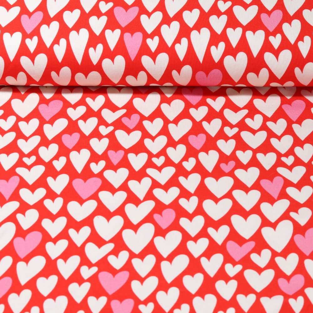 De warme roodtinten en de contrastrijke hartmotieven maken van deze sweat de perfecte blikvanger voor speciale lievelingsstukken: of het nu gaat om knusse hoodies, comfortabele truien, casual jurken of comfortabele kinderkleding. Accessoires zoals lussen, mutsen of kussenhoezen worden ook echte hartenprojecten met dit ontwerp.