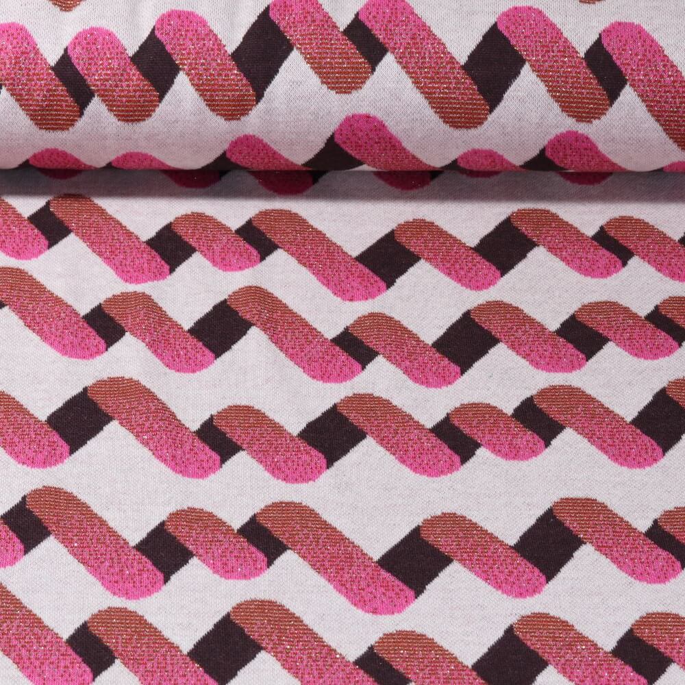 Deze elegante jacquardjersey betovert met zijn grafische "op en neer" dessin in stijlvolle grijs- en bruintinten. Fijne, verspringende lijnen vormen een levendig zigzagpatroon dat zowel modern als tijdloos is.