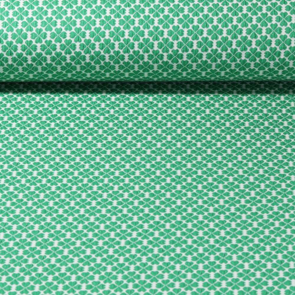 Het fijne, gelijkmatige patroon heeft een handgebreide look en geeft je naaiprojecten een gezellig, modern tintje - perfect voor truien, vesten, jurken, rokken, beanies, lussen of kinderkleding. De harmonieuze kleurencombinatie van gedurfd groen en de heldere hartmotieven maakt deze stof tot een echte blikvanger die nog steeds heerlijk geschikt is voor dagelijks gebruik.
