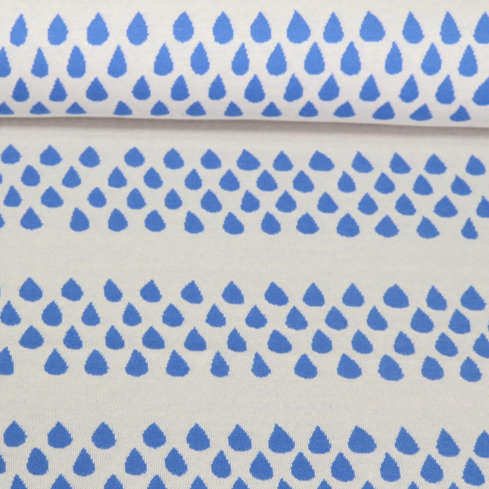 Biologische jacquard jersey - Picnic Drops Ecru blauw