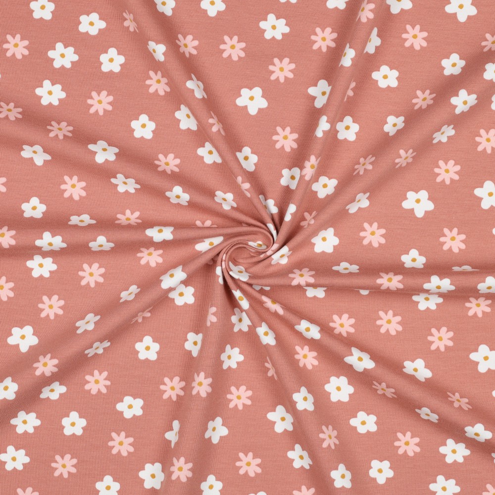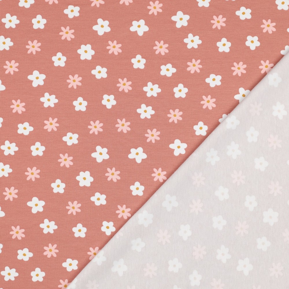 Biologische jersey - Blümchen Altrosa