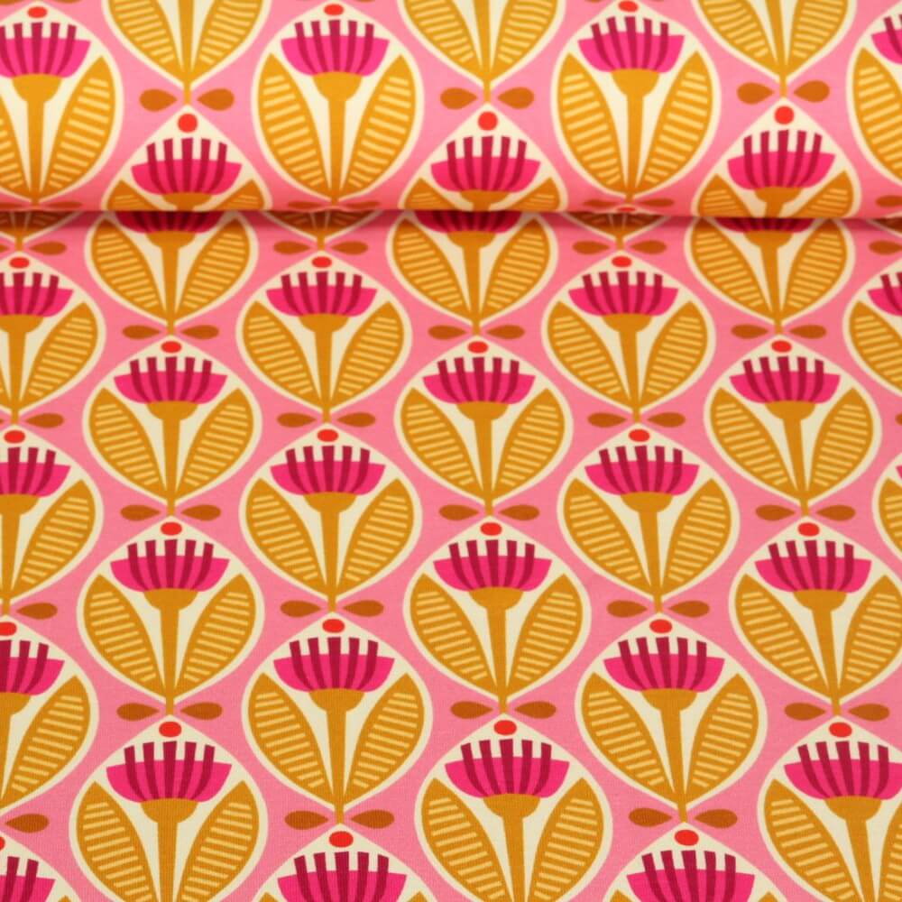 Biologische jersey - Hamburger Liebe digitale print Picknick Buds Roze