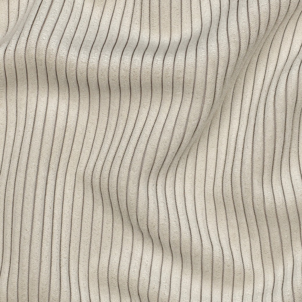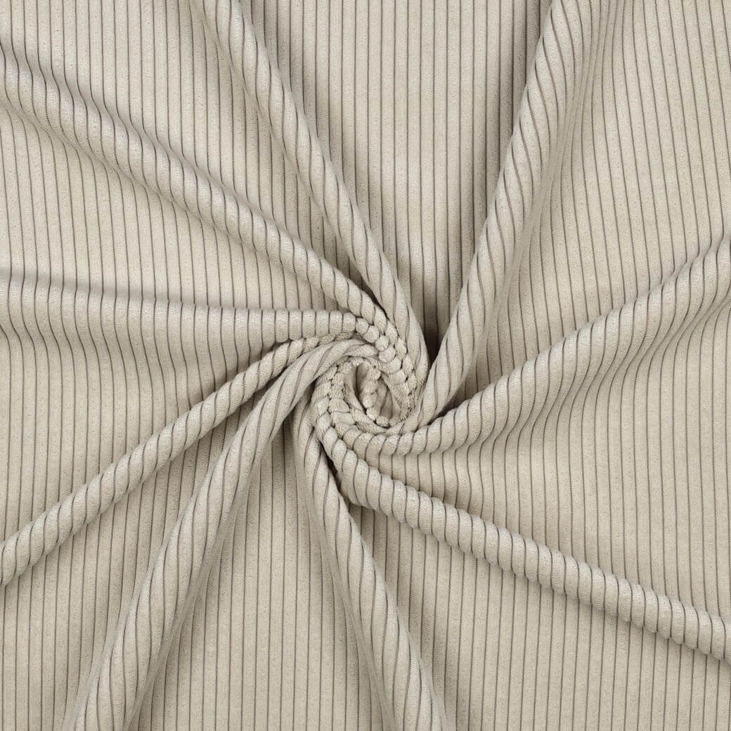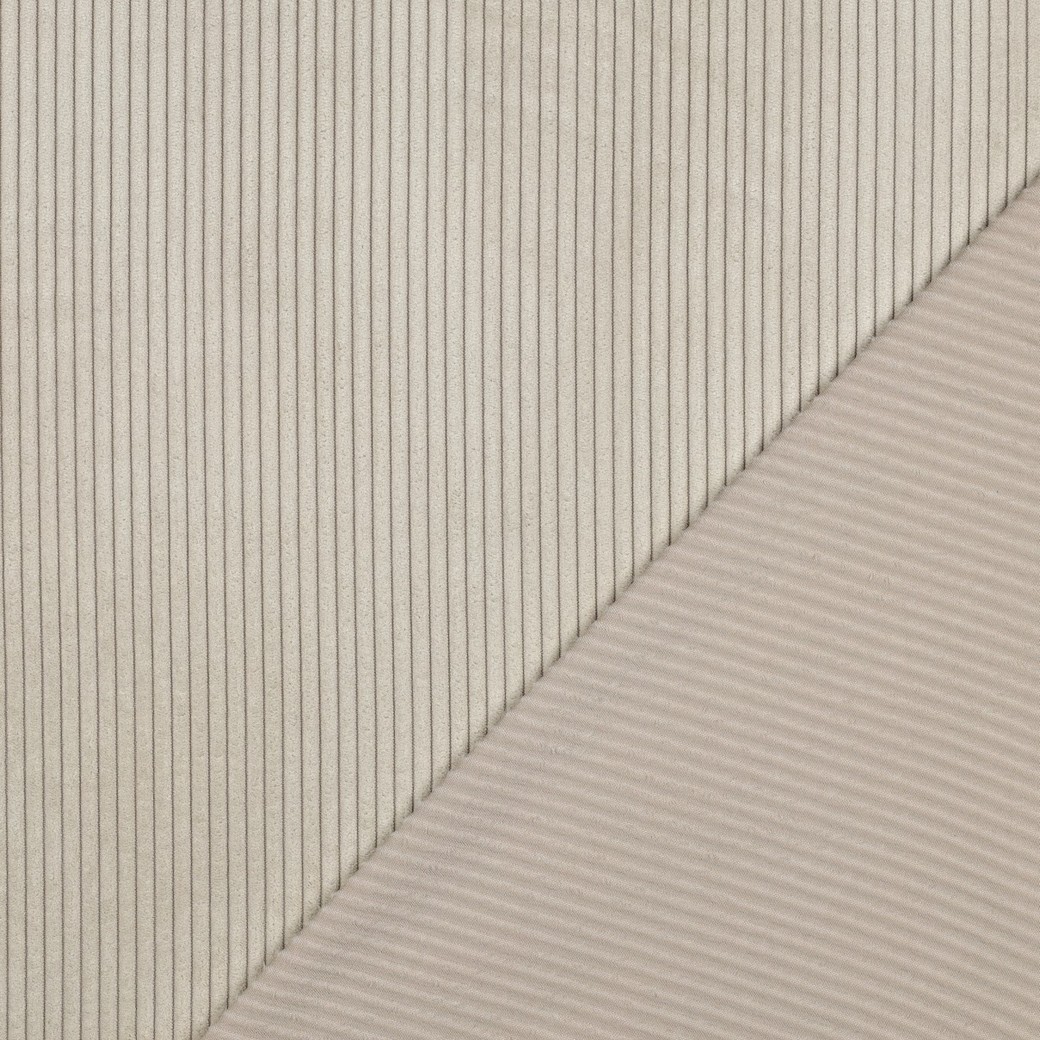 Dit elegante brede ribfluweel in een delicate beige kleur maakt indruk met zijn duidelijke, gelijkmatige ribbels met een breedte van 4,5 mm. De fijne textuur geeft de stof een moderne en toch tijdloos klassieke uitstraling - perfect voor iedereen die van ingetogen elegantie houdt.