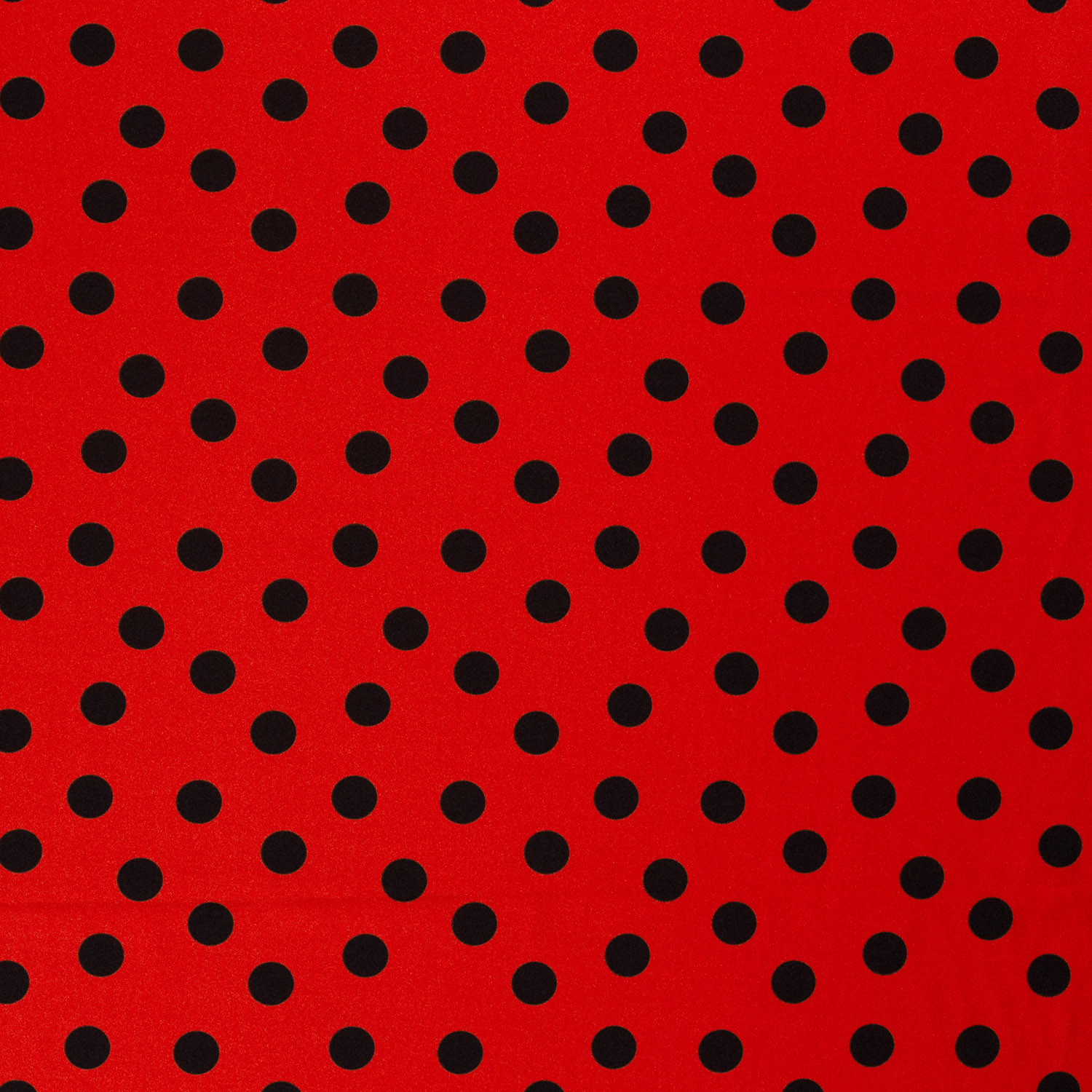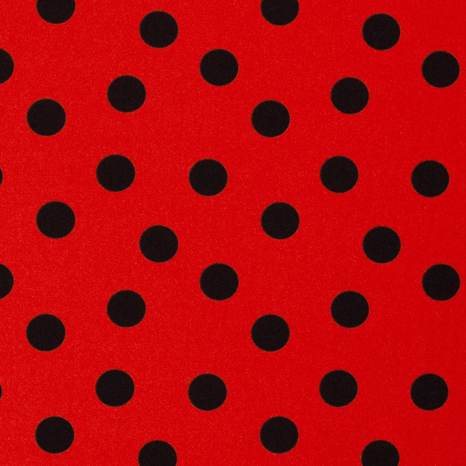 Deze opvallende carnavalsstof zorgt gegarandeerd voor een goed humeur: op een felrode achtergrond dansen grote, diepzwarte stippen en maken het de perfecte blikvanger voor carnaval, themafeesten en podiumoptredens.