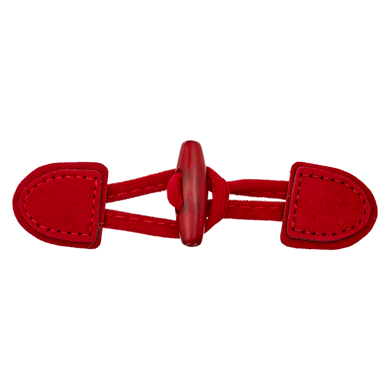 De sluiting bestaat uit een klassieke knevel in hoornlook gecombineerd met een mooi gevormde staaf in bordeaux. De fijne nerf van de knevel en de harmonieuze kleur van het lint creëren een hoogwaardige, tijdloze look - ideaal voor duffeljassen, capes, vesten, kinderjassen en accessoires.