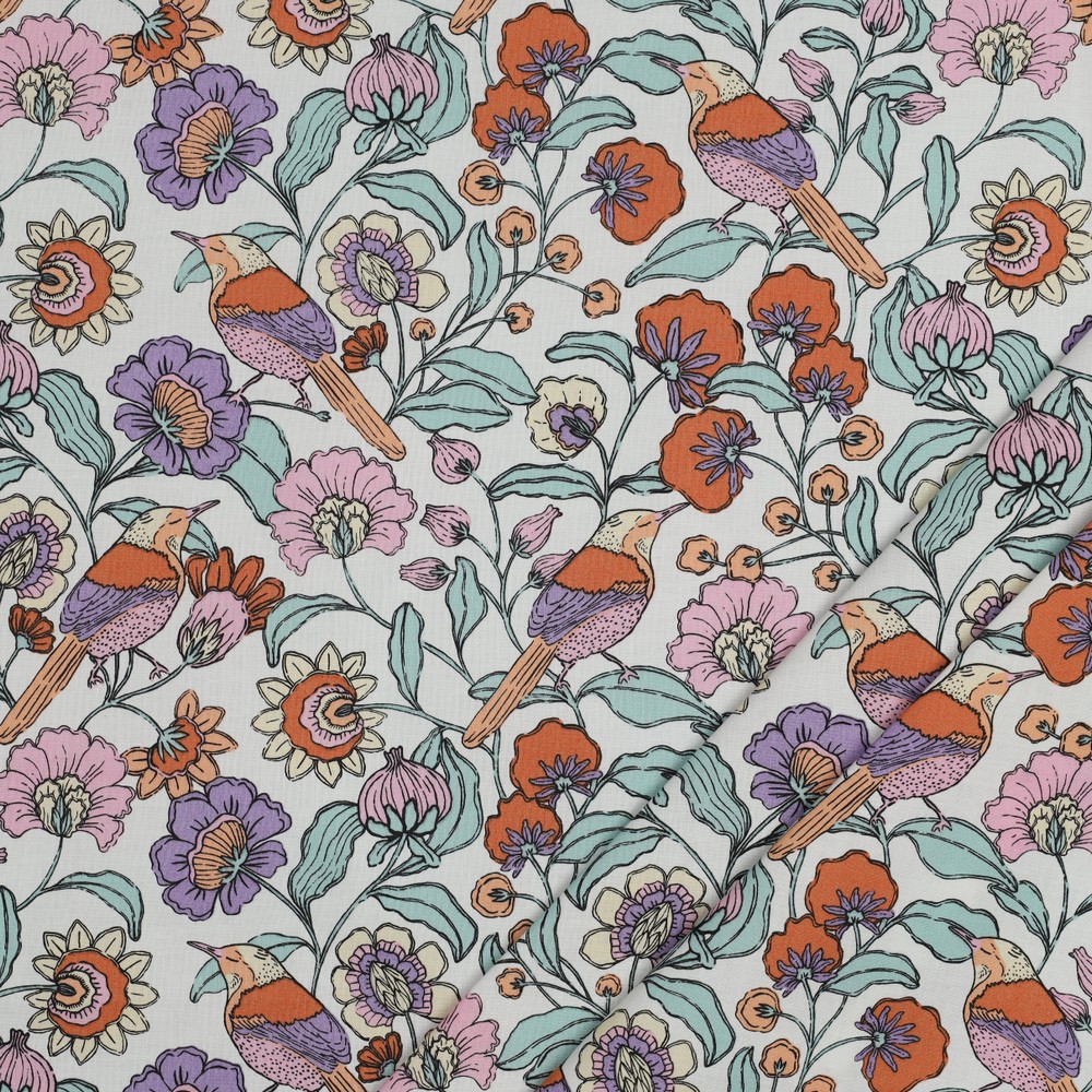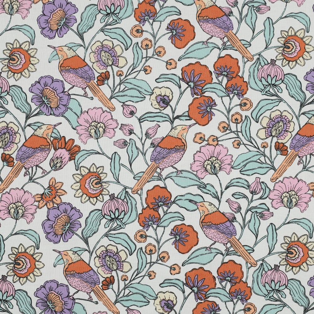 Het speelse vogel- en bloemmotief doet denken aan een zonnige lentemorgen in de tuin en brengt in een handomdraai een goed humeur in huis. Of het nu gaat om afveegbare tafelkleden, lunchtassen, toilettassen, opbergzakken of creatieve decoratieprojecten - deze gecoate stof combineert praktisch gebruik met een liefdevol gedetailleerd ontwerp dat gegarandeerd een blikvanger is.