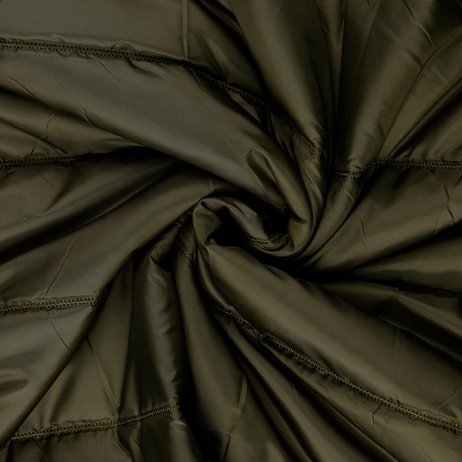 Deze gewatteerde jasstof in de trendy army-look is perfect voor iedereen die houdt van casual outdoorstijlen. Het opvallende doorgestikte streeppatroon met banen van ongeveer 10 cm breed geeft de stof een moderne, sportieve uitstraling en zorgt tegelijkertijd voor een mooie, volumineuze structuur.