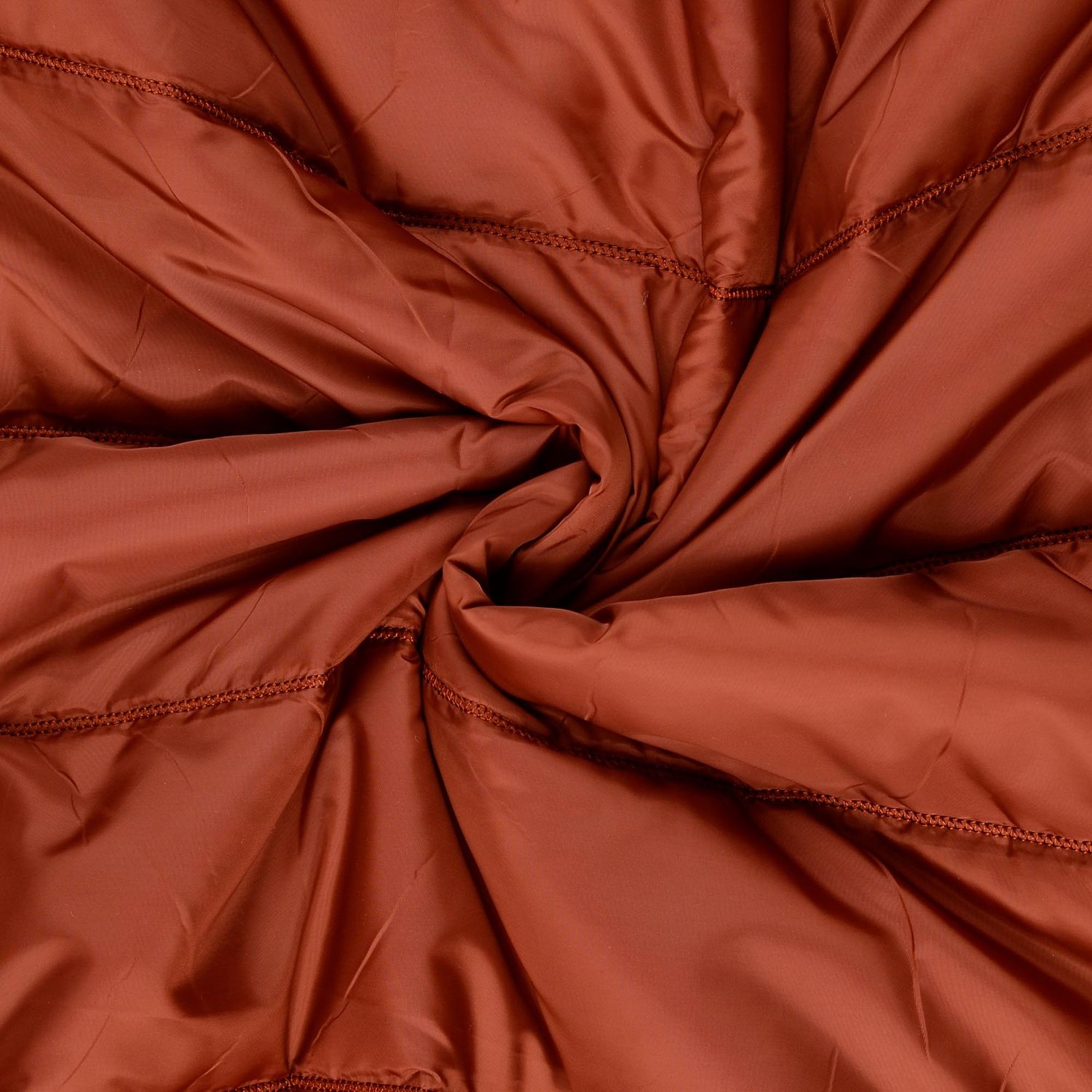 Deze gewatteerde jasstof in warm roestbruin is perfect voor comfortabele favoriete kledingstukken met stijl. De duidelijke, brede gewatteerde strepen geven de stof een moderne, sportieve uitstraling, terwijl de zachte vulling zorgt voor aangename warmte en volume.