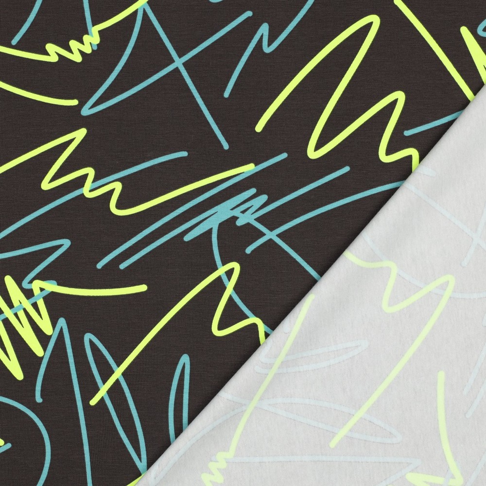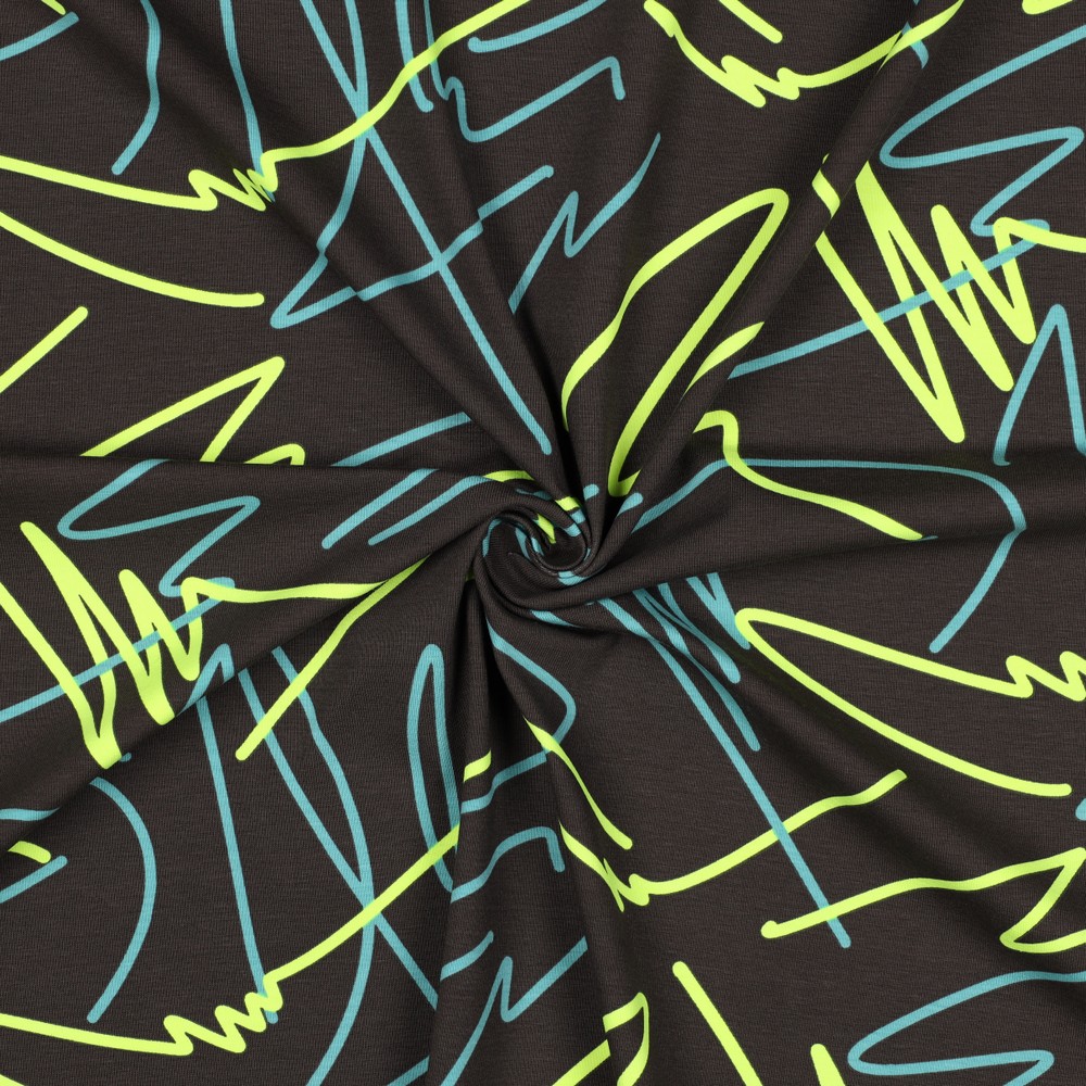 Het grafische patroon oogt tegelijk urban en creatief – perfect voor iedereen die graag opvalt en houdt van individuele stijlen. Van deze jersey maak je in een handomdraai trendy shirts, leggings, jurken, hoodies, mutsen of kinderkleding met een coole streetstyle-touch. Ook ideaal voor sportieve outfits, loungewear of opvallende accenten zoals boorden en details.