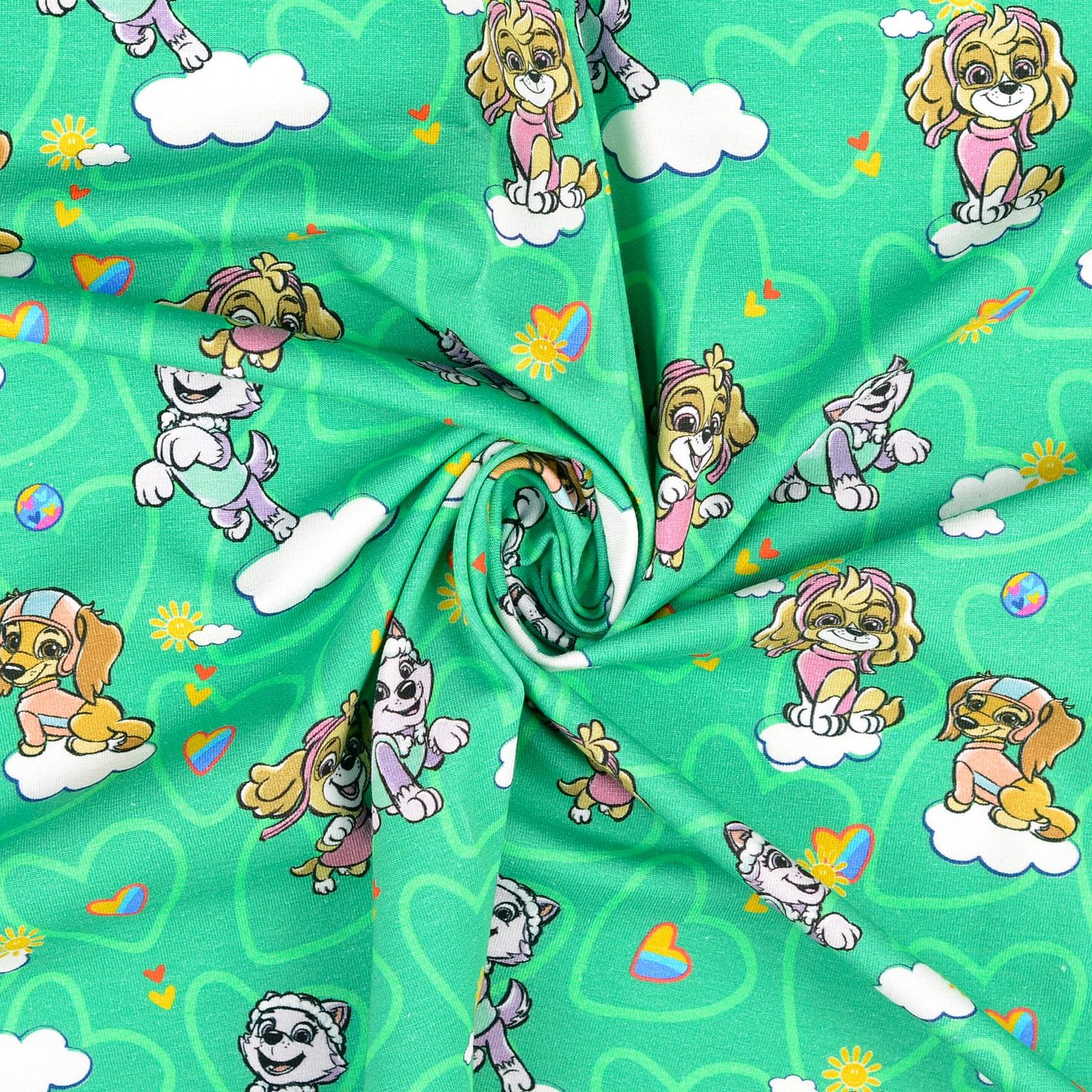 Fris, vrolijk en vol liefde – deze jersey met grasgroene achtergrond en talloze, kleurrijk gedrukte hartjes is een echte blikvanger. De hartjes lijken liefdevol getekend en zorgen met hun verschillende kleuren en kleine details voor een speelse, levendige uitstraling.