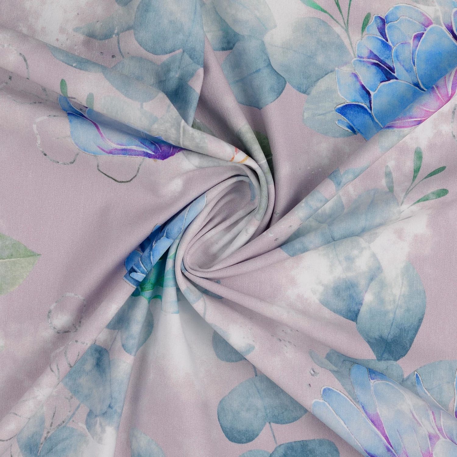 Jersey - Digitale print bloemen en bladeren aquarel oudroze
