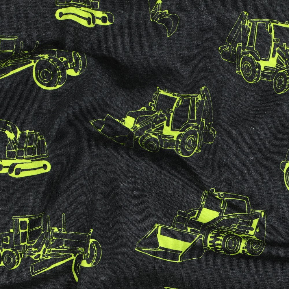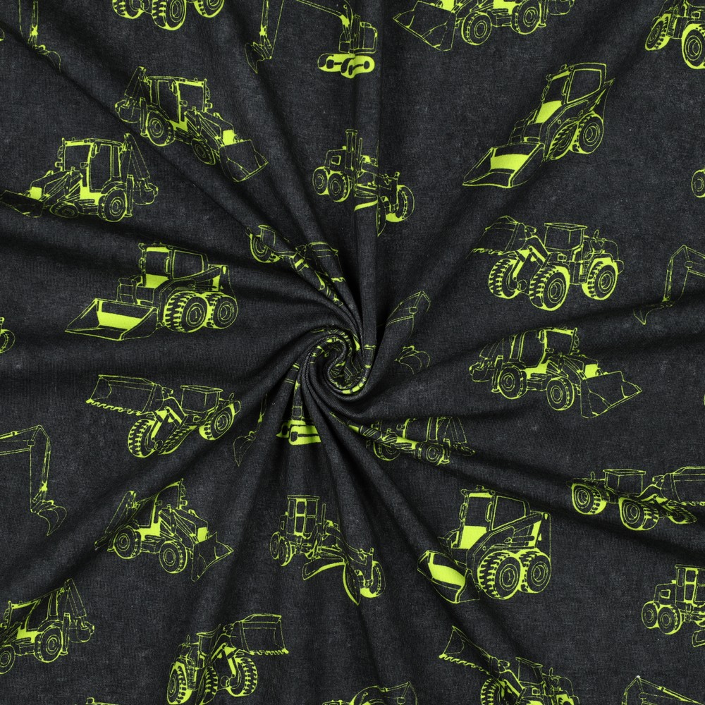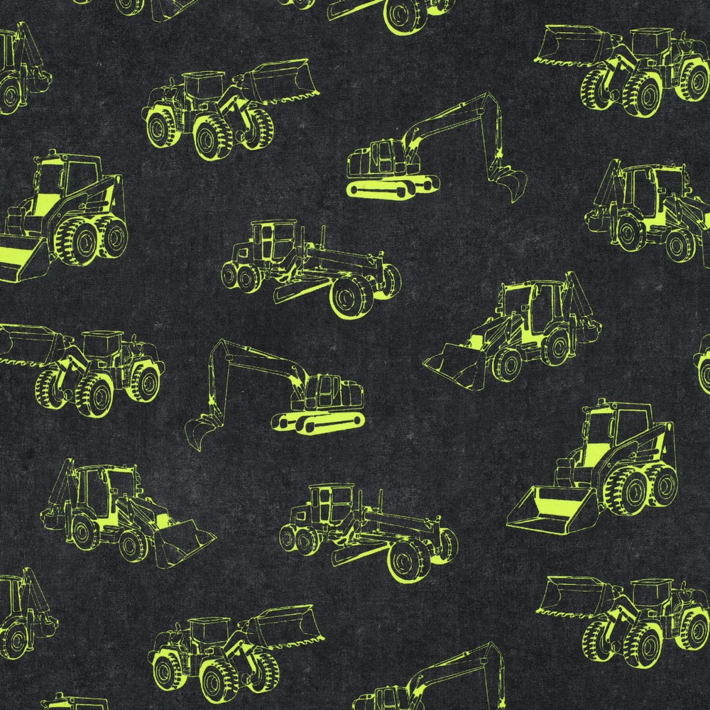 Jersey - Digitale print Bouwvoertuigen Zwart Neon