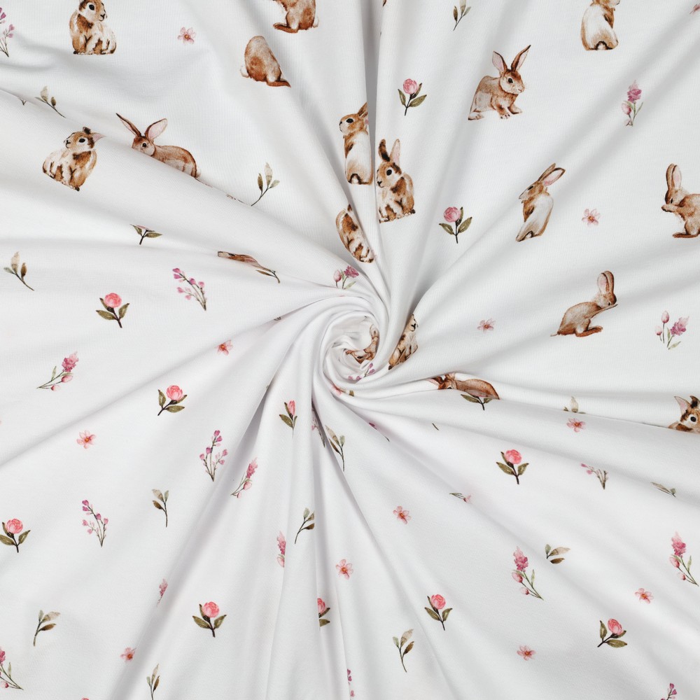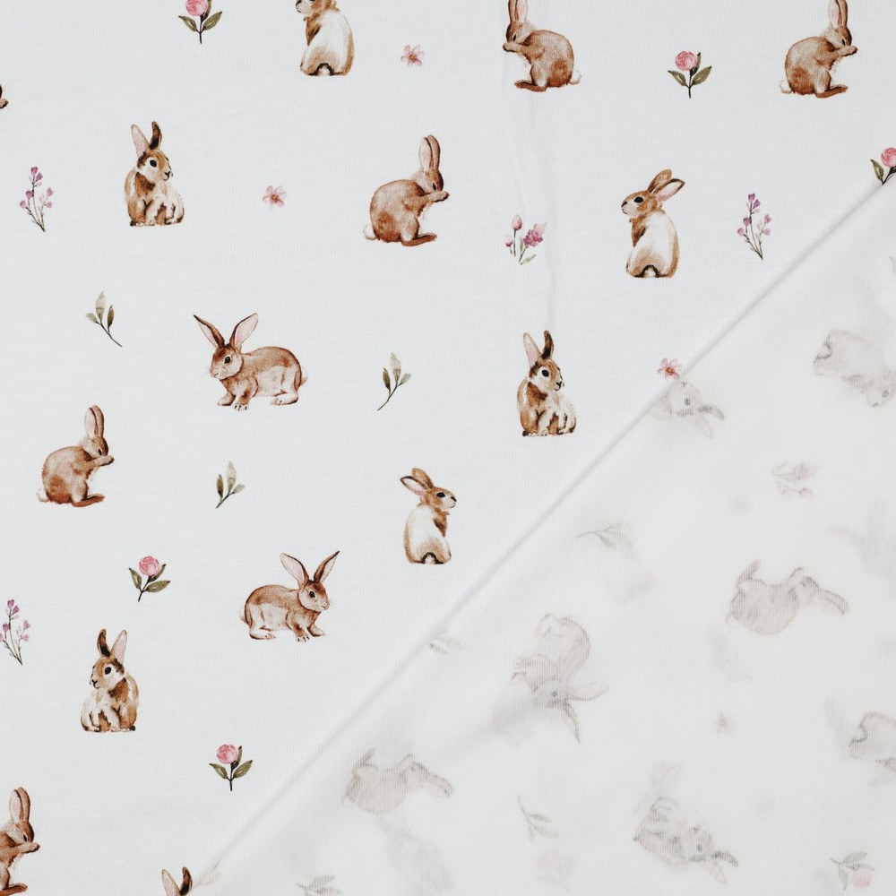 Jersey - Digitale print Combinatie Witte Konijntjes
