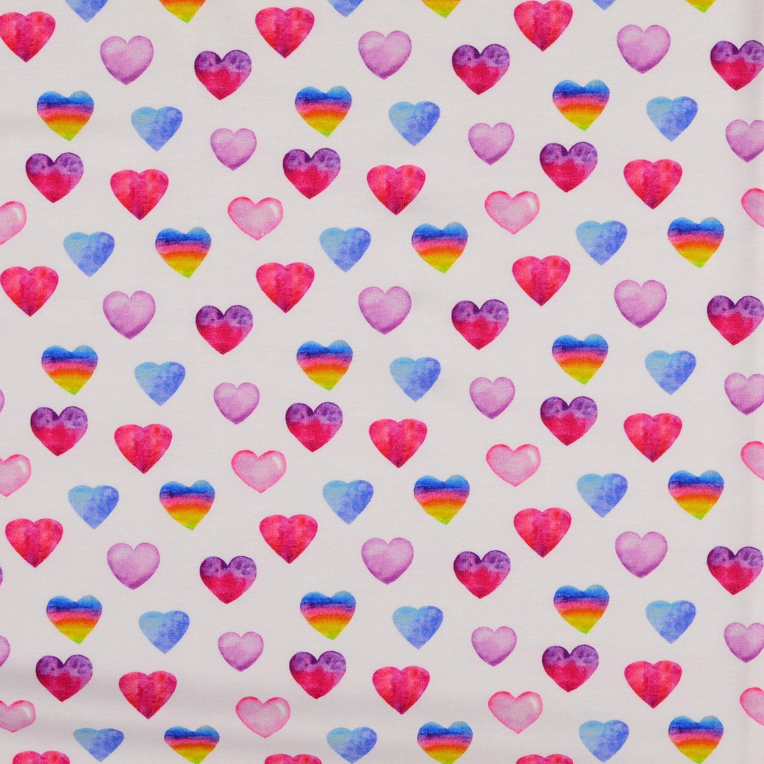 Jersey - Digitale print Kleurrijke hartjes op wit
