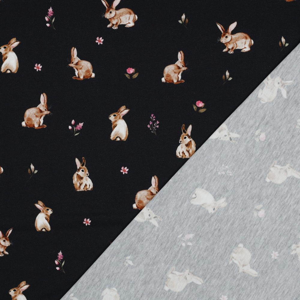 Ideaal voor comfortabele kinderkleding, knusse homewear, schattige accessoires of speelse babyoutfits – deze stof brengt met zijn charmante konijnenmotief veel liefde en gezelligheid in jouw naai-projecten.