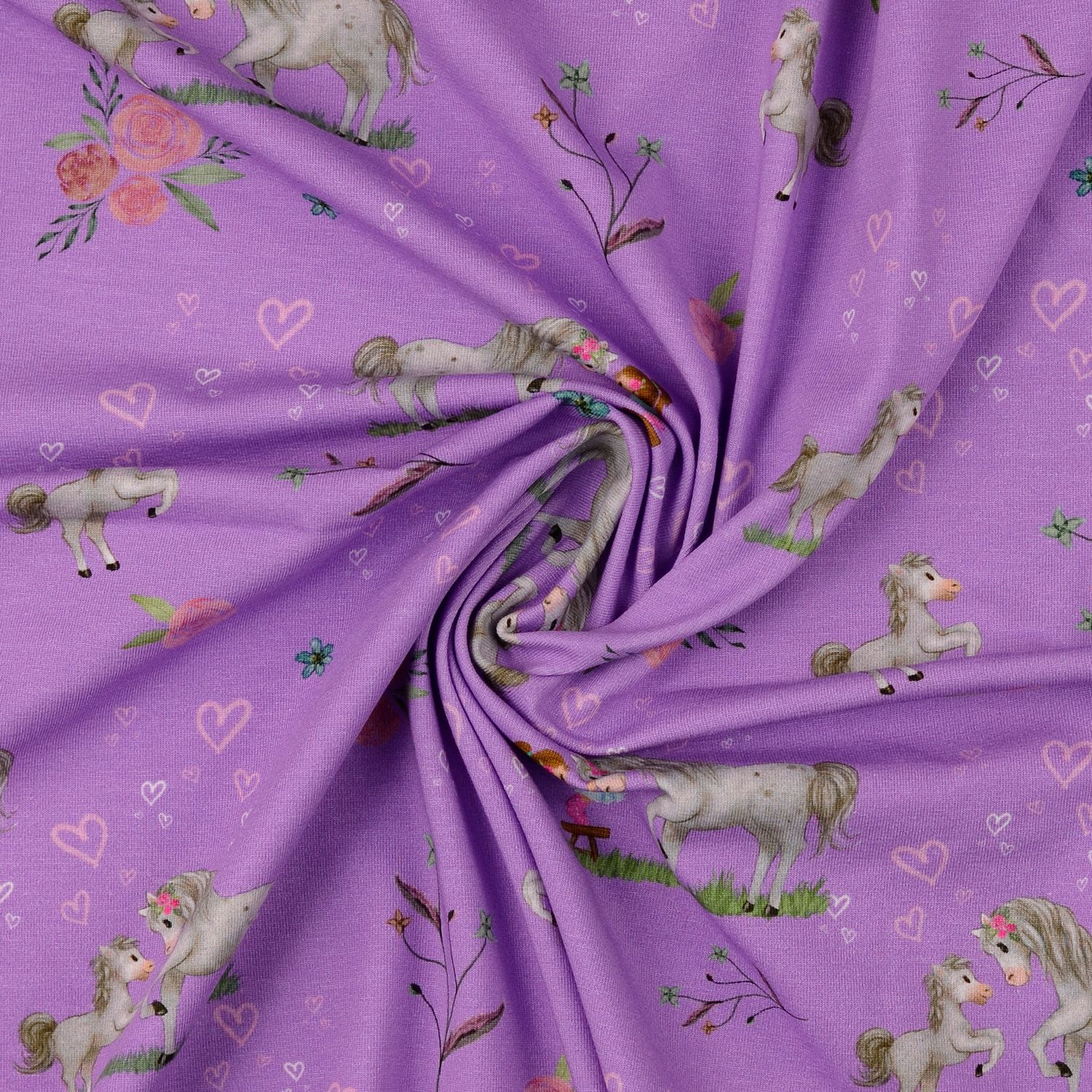 Jersey - Digitale print Paardenliefde Lila