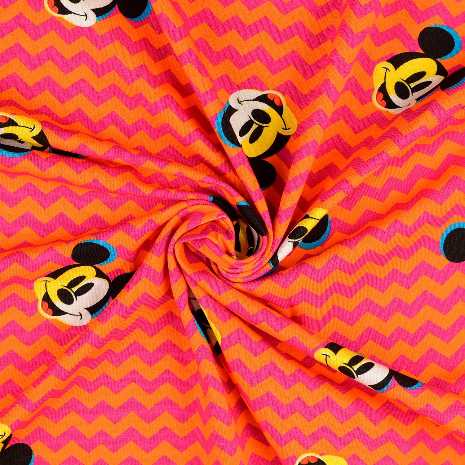 Deze jersey brengt met zijn levendige zigzagpatroon meteen een goed humeur in elk naai-project. Krachtige rode en oranje tinten ontmoeten warme gele nuances, daartussen creëren fijne, donkerdere lijnen spannende contrasten. Het dynamische chevron-ontwerp is modern, speels en een echte blikvanger – ideaal voor opvallende shirts, comfortabele broeken, kleurrijke jurken of bijzondere unieke stukken voor kinderen en volwassenen.