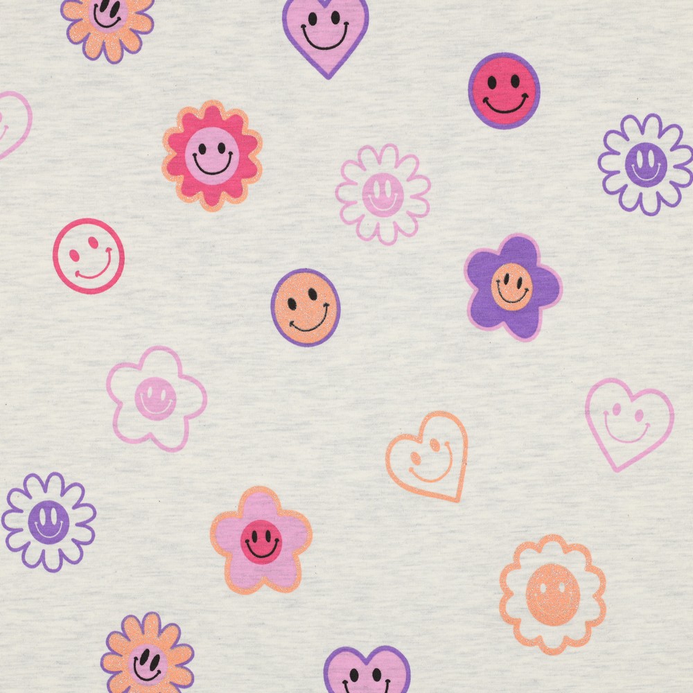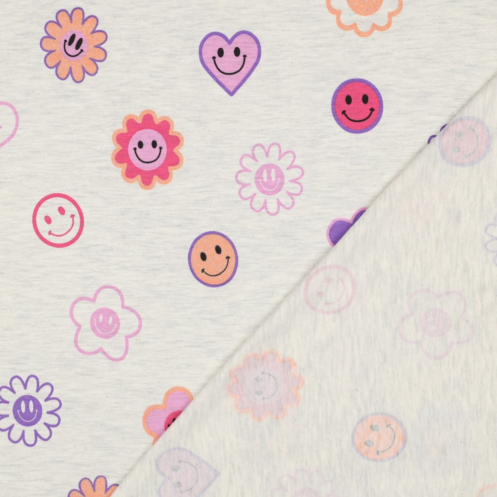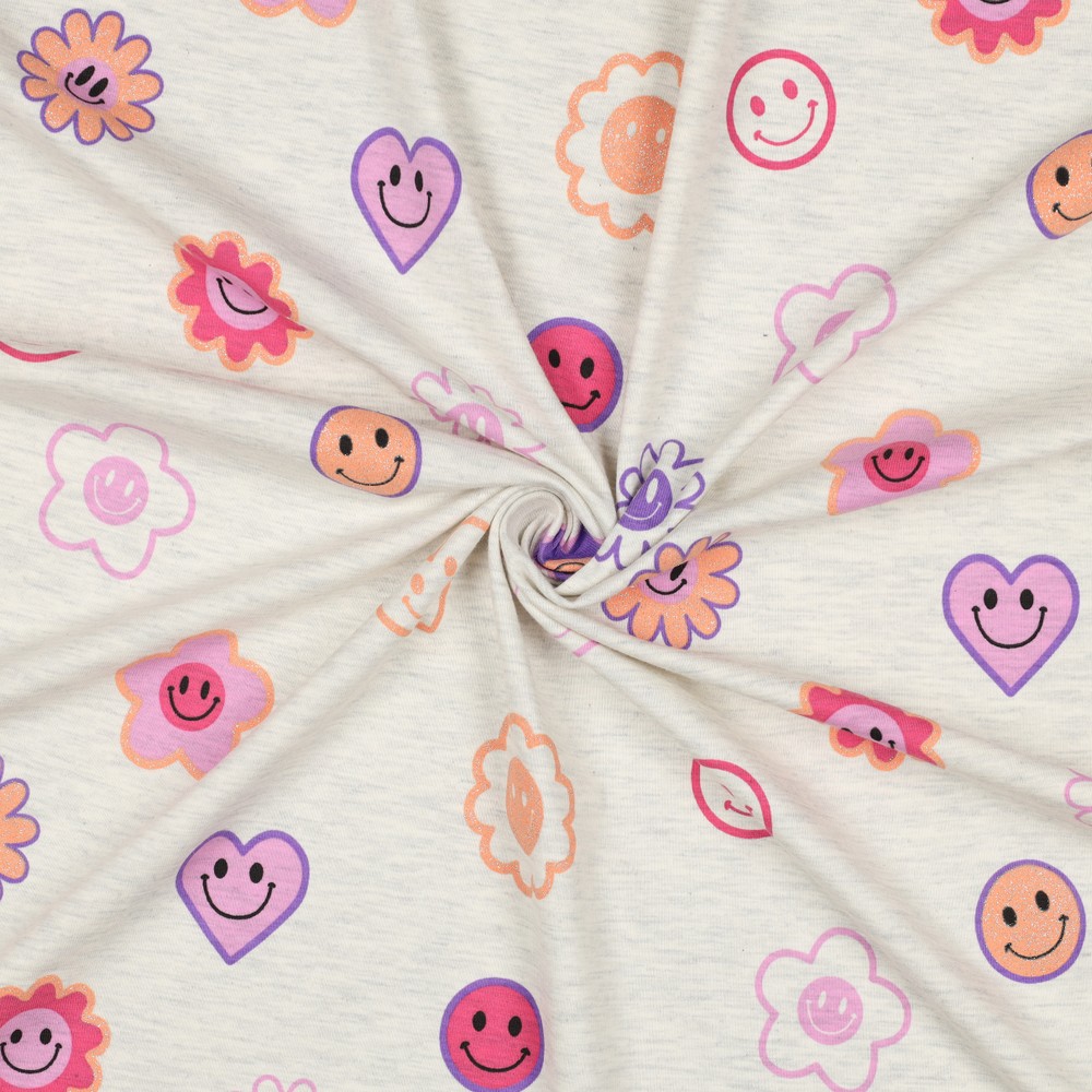 Jersey - Smileys Mix Glitter Ecru Melange