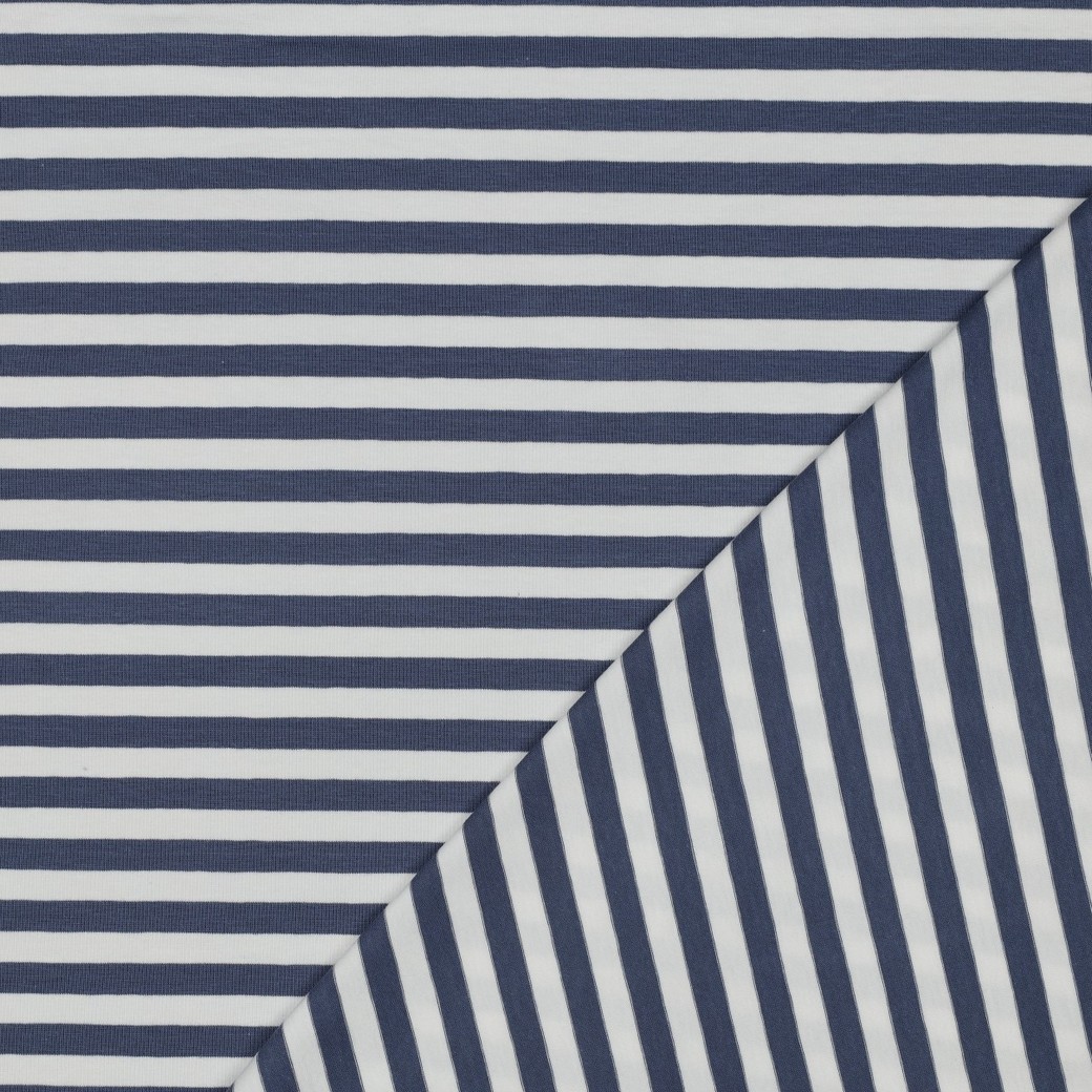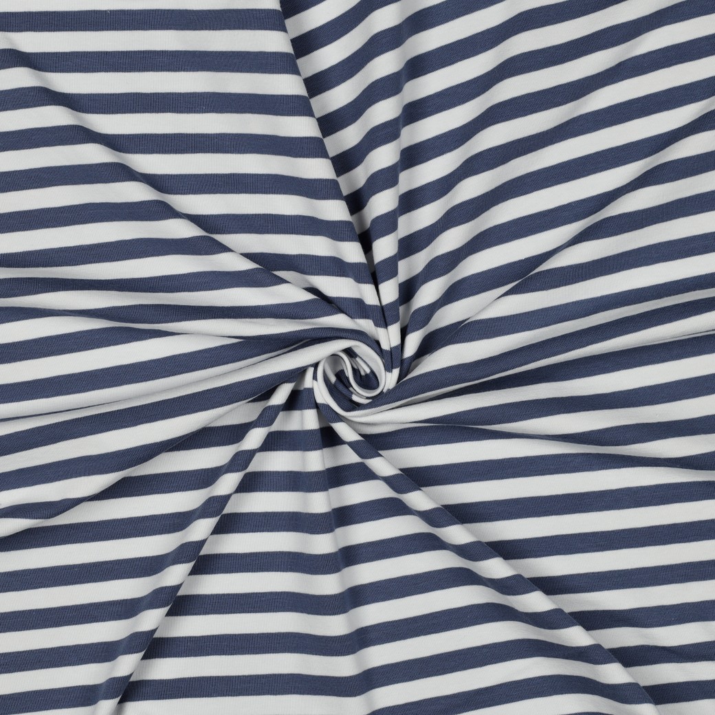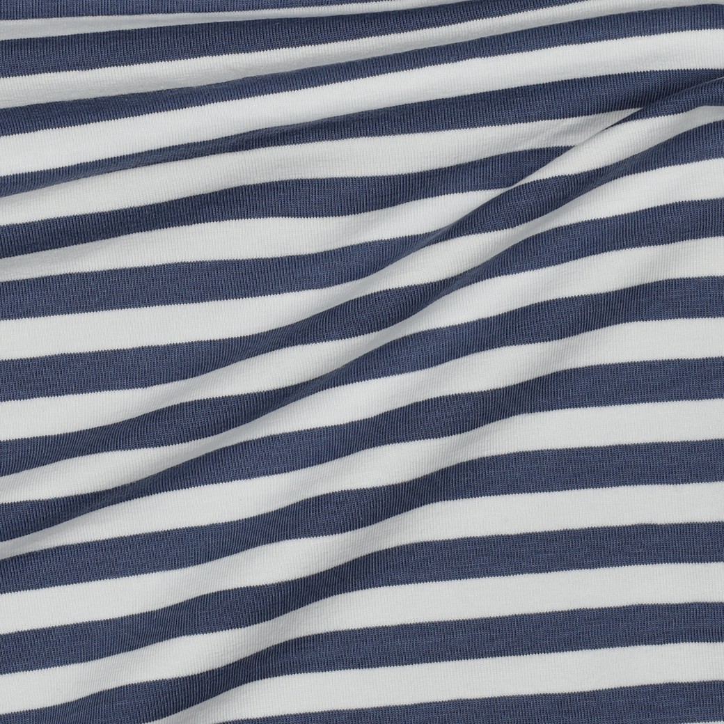 Jersey - strepen wit en spijkerblauw, garen geverfd