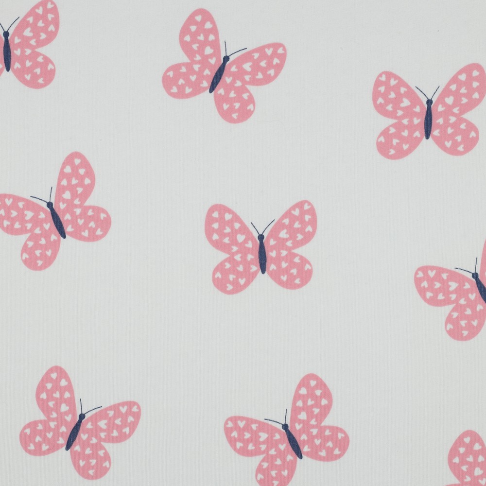 Zo teer als een lentebriesje: delicate vlinders in harmonisch op elkaar afgestemde natuurlijke tinten dartelen op de zacht gevlekte ecru achtergrond. De subtiele kleuren en het mooie ontwerp geven de stof een rustige maar vrolijke uitstraling - ideaal voor iedereen die van knus en toch speciaal houdt.
