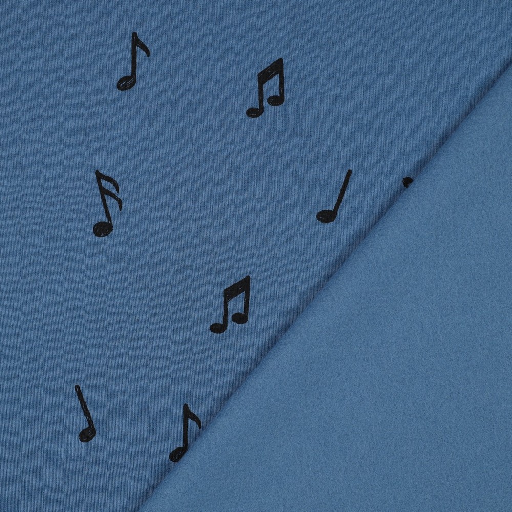 De zachte, aan de binnenkant geborstelde stof nodigt direct uit tot comfort en is ideaal voor gezellige hoodies, joggingbroeken, sweaters, jurken of loungewear. Of het nu is voor muziekles, het koor, de bandrepetitie of gewoon voor iedereen die van muziek houdt – met deze stof maak je echte lievelingsstukken die niet alleen comfortabel zijn, maar ook visueel de juiste toon raken.
