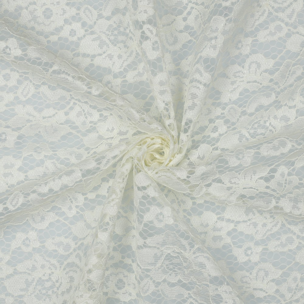 De zachte ivoorkleur flatteert elke teint en kan perfect gecombineerd worden - met klassieke natuurtinten, delicate pasteltinten of gedurfde accentkleuren. Ideaal voor romantische bruids- en avondkleding, speelse tops, bolero's, mouwen, inzetstukken of verfijnde rugdetails. Accessoires zoals strikjes, haarlintjes of delicate plaids krijgen ook een vleugje luxe met deze kanten stof.
