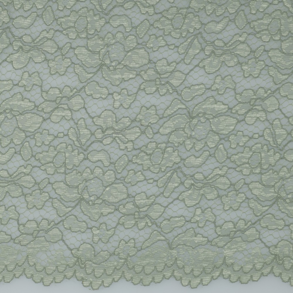 Een bijzonder detail is de dubbelzijdige, decoratieve boogrand (scallop-rand): deze kan direct worden gebruikt als verfijnde zoomafwerking en bespaart extra zomen. Qua greep doet deze kanten stof denken aan een hoogwaardige modestof, aangenaam stevig en vormvast, zodat hij zijn contour behoudt en patronen en silhouetten duidelijk tot hun recht komen.