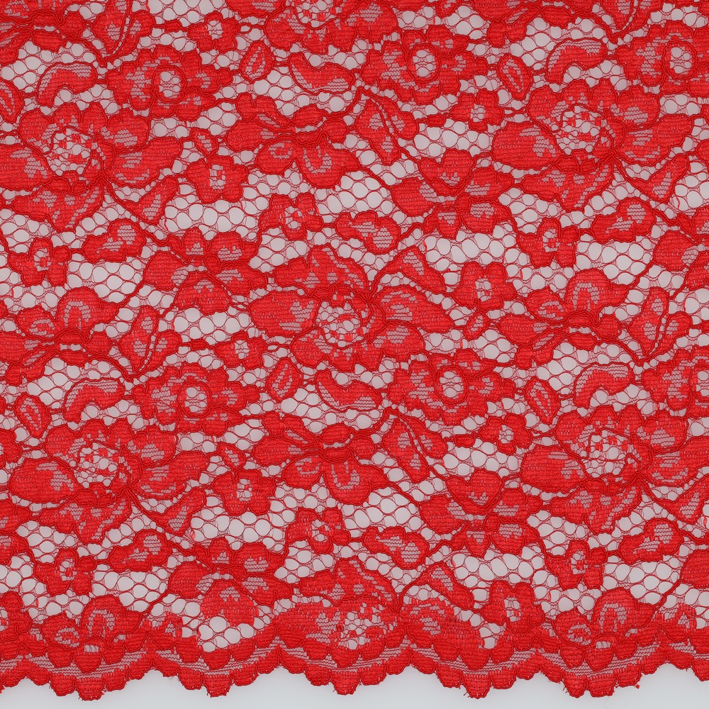 Deze verfijnde kanten stof trekt alle blikken naar zich toe: filigrane bloemslingers en kunstzinnige ornamenten spreiden zich uit over een transparante netbasis en creëren een romantische, licht nostalgische look. De kant straalt in intense kleuren – van diep bordeauxviolet via fris mint tot krachtig rood – en zorgt voor indrukwekkende contrasten die elk naaiproject tot een highlight maken.