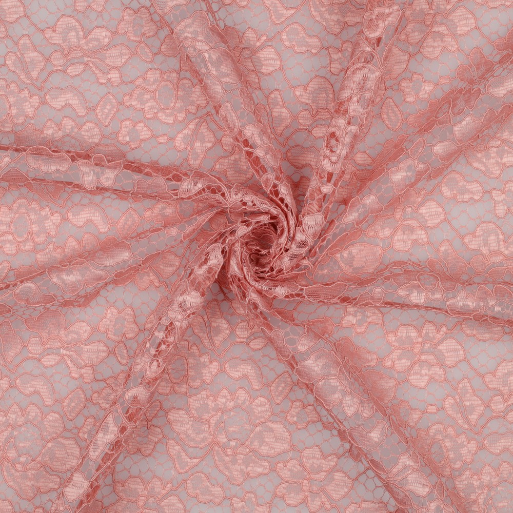 Deze verfijnde kanten stof trekt alle blikken naar zich toe: filigrane bloemslingers en kunstzinnige ornamenten spreiden zich uit over een transparante netbasis en creëren een romantische, licht nostalgische look. De kant straalt in intense kleuren – van diep bordeauxviolet via fris mint tot krachtig rood – en zorgt voor indrukwekkende contrasten die elk naaiproject tot een highlight maken.