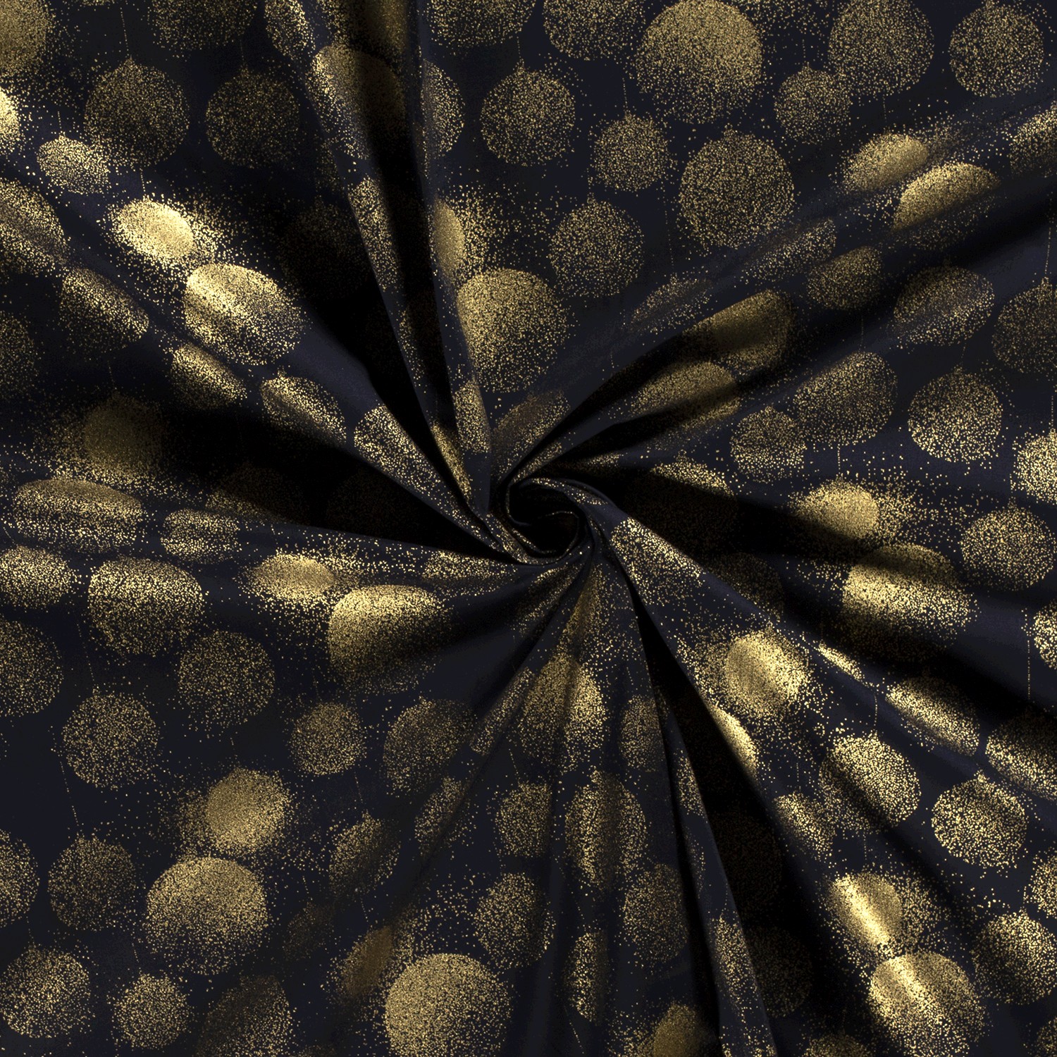 Katoen KERST Foliedruk Goudstof Cirkels op Donkerblauw