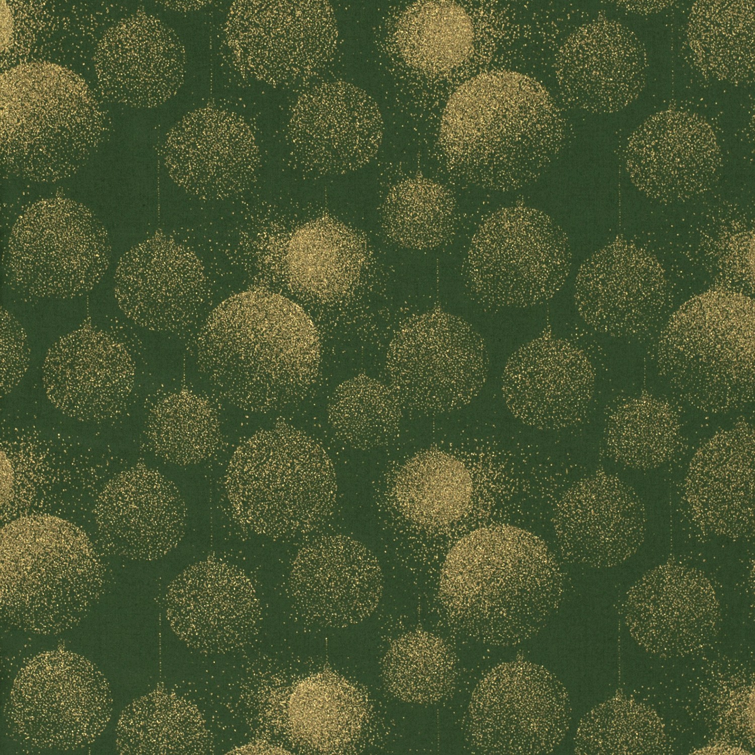 Katoen KERST Foliedruk Goudstof Cirkels op Donkergroen