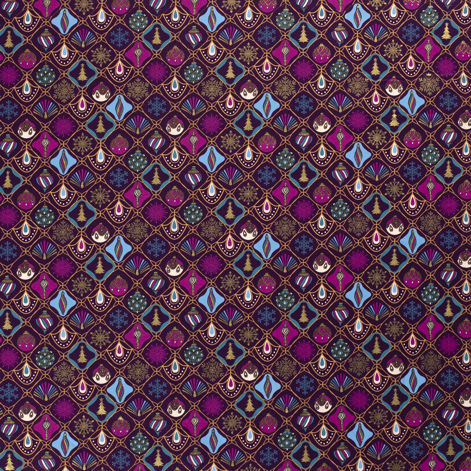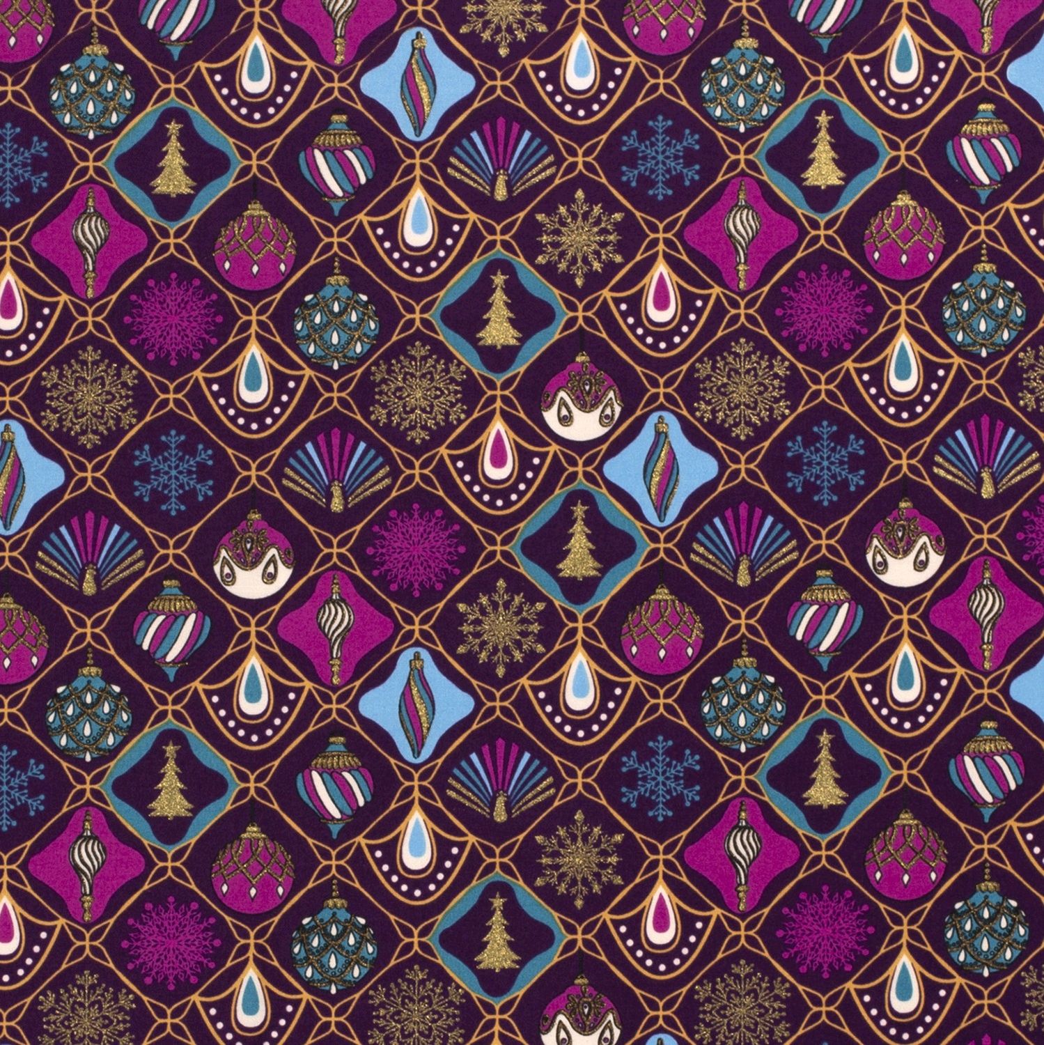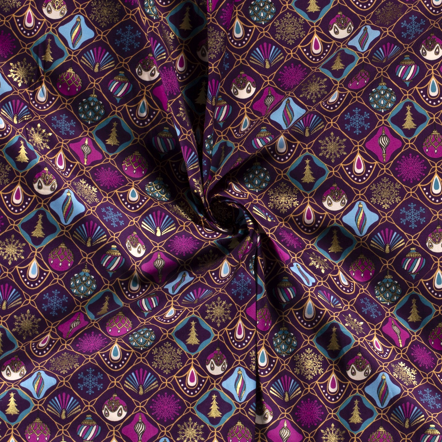 Katoen KERST Foliedruk Kerstballen op paars