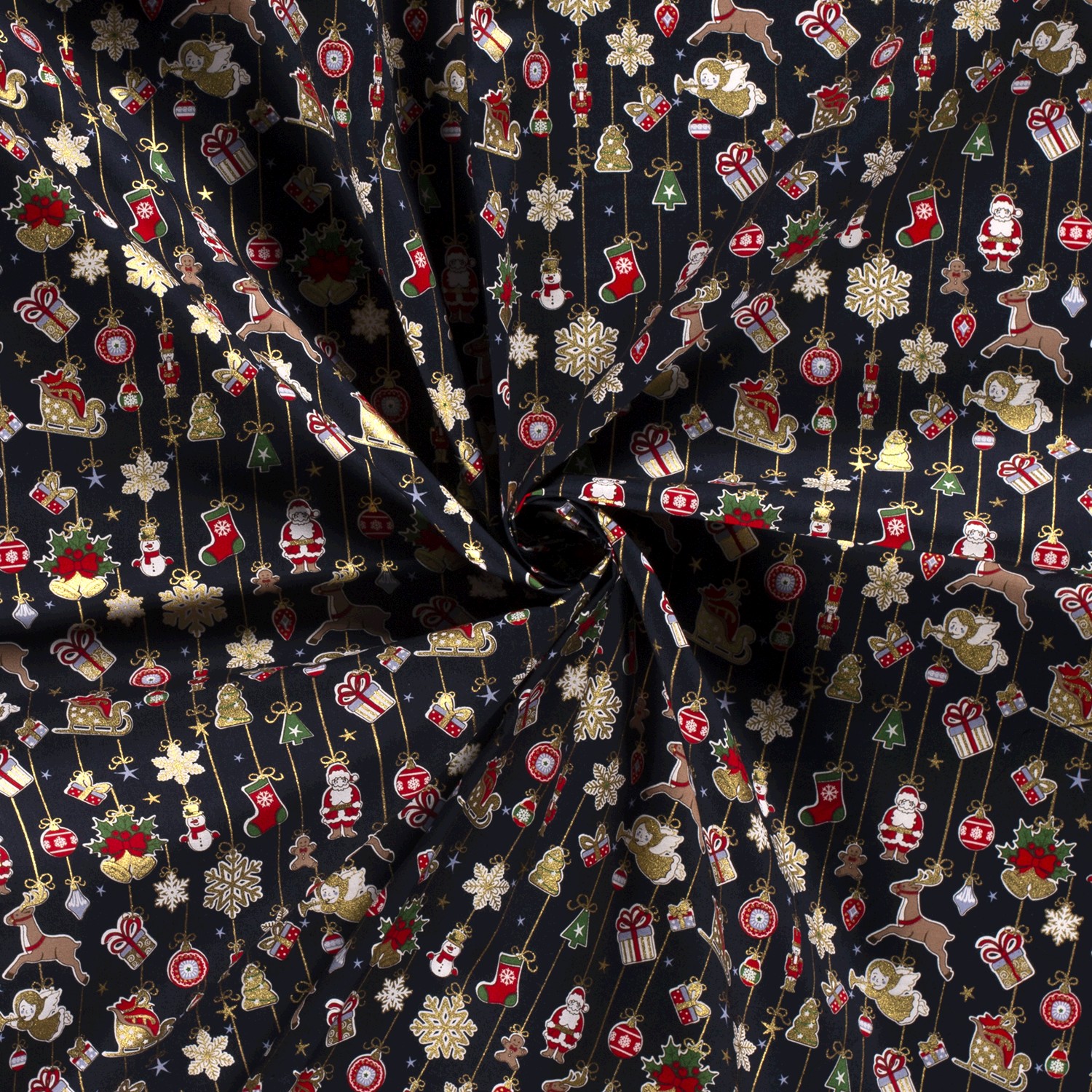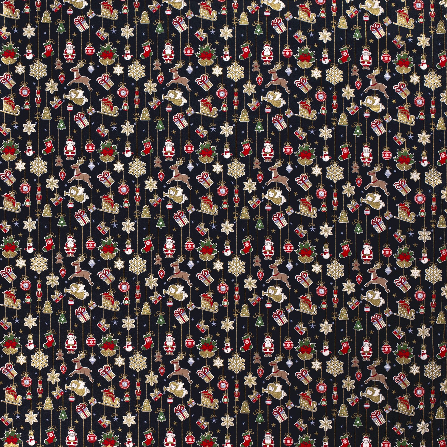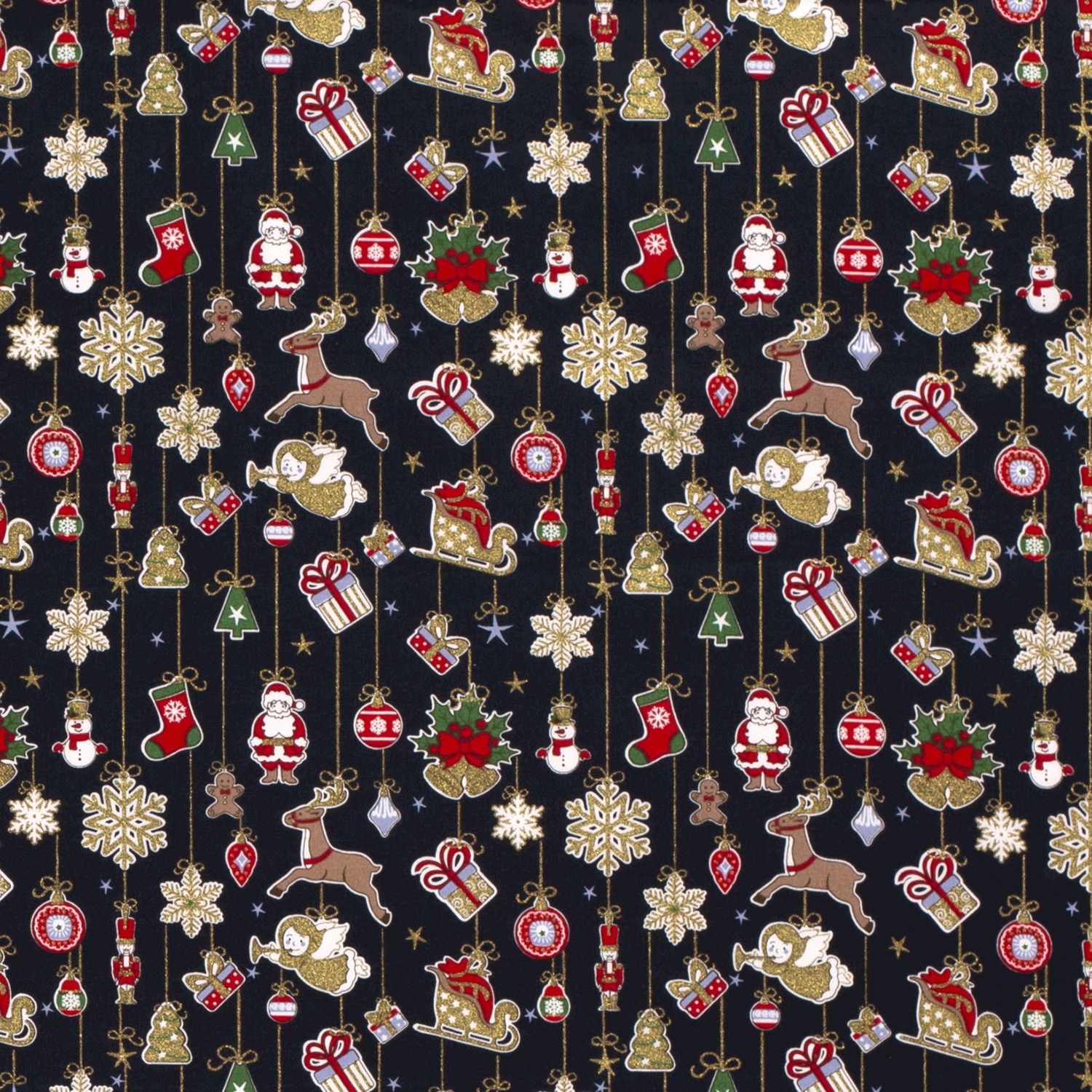 Katoen KERST Foliedruk kerstversieringen op donkerblauw