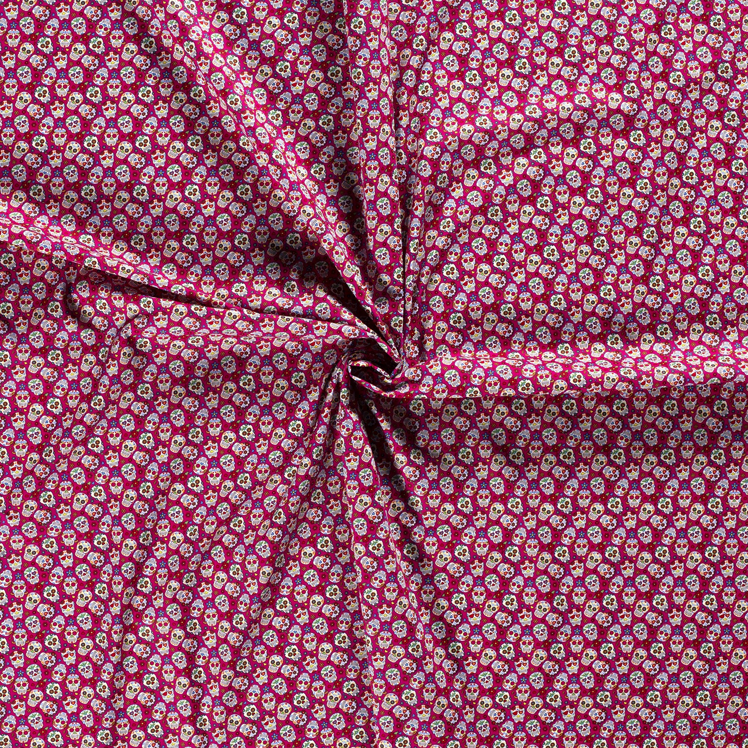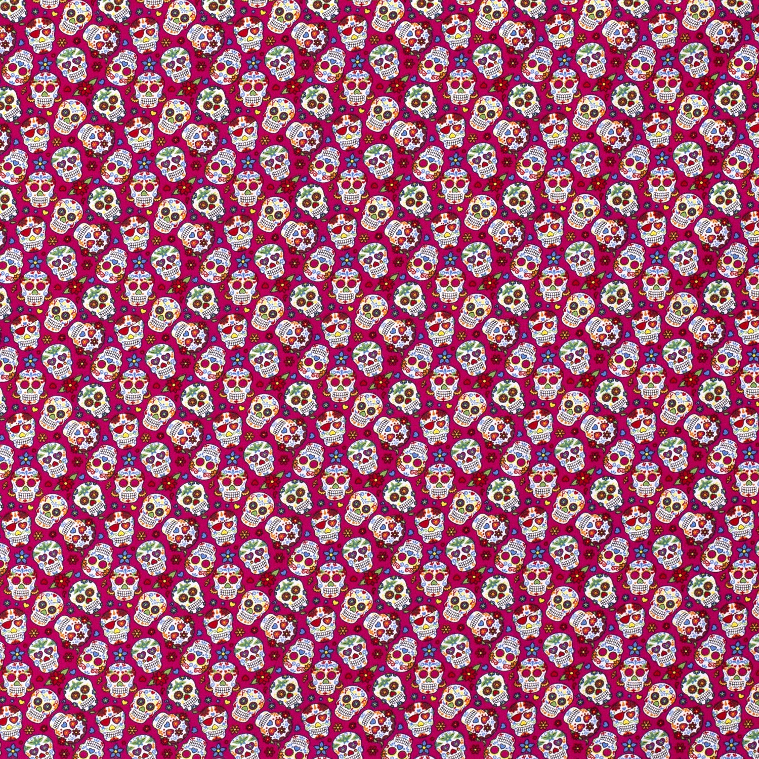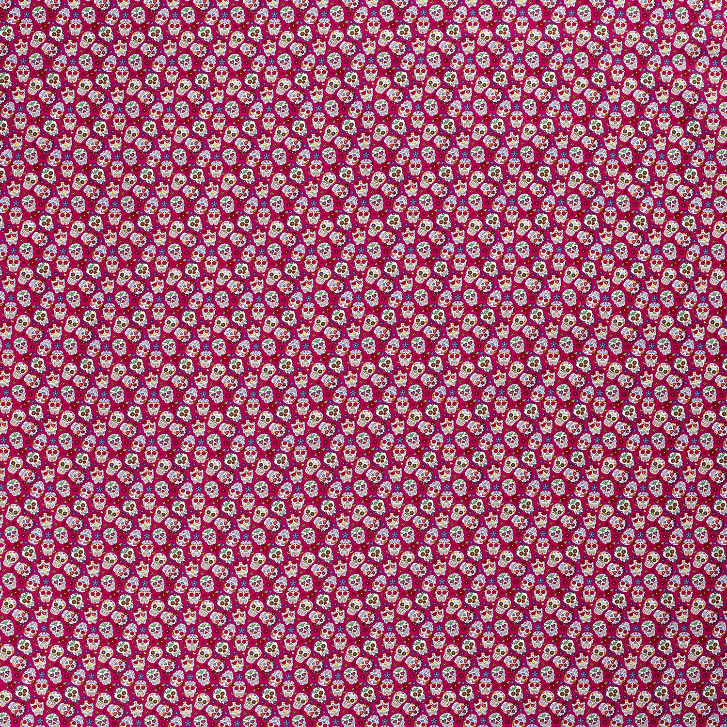 Katoen Kleine bloemen en schedels op roze