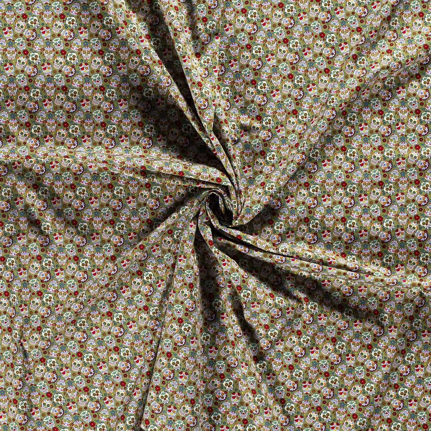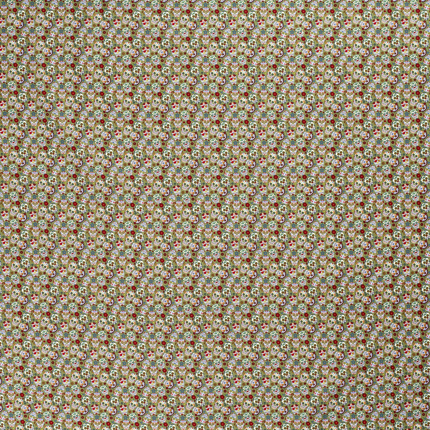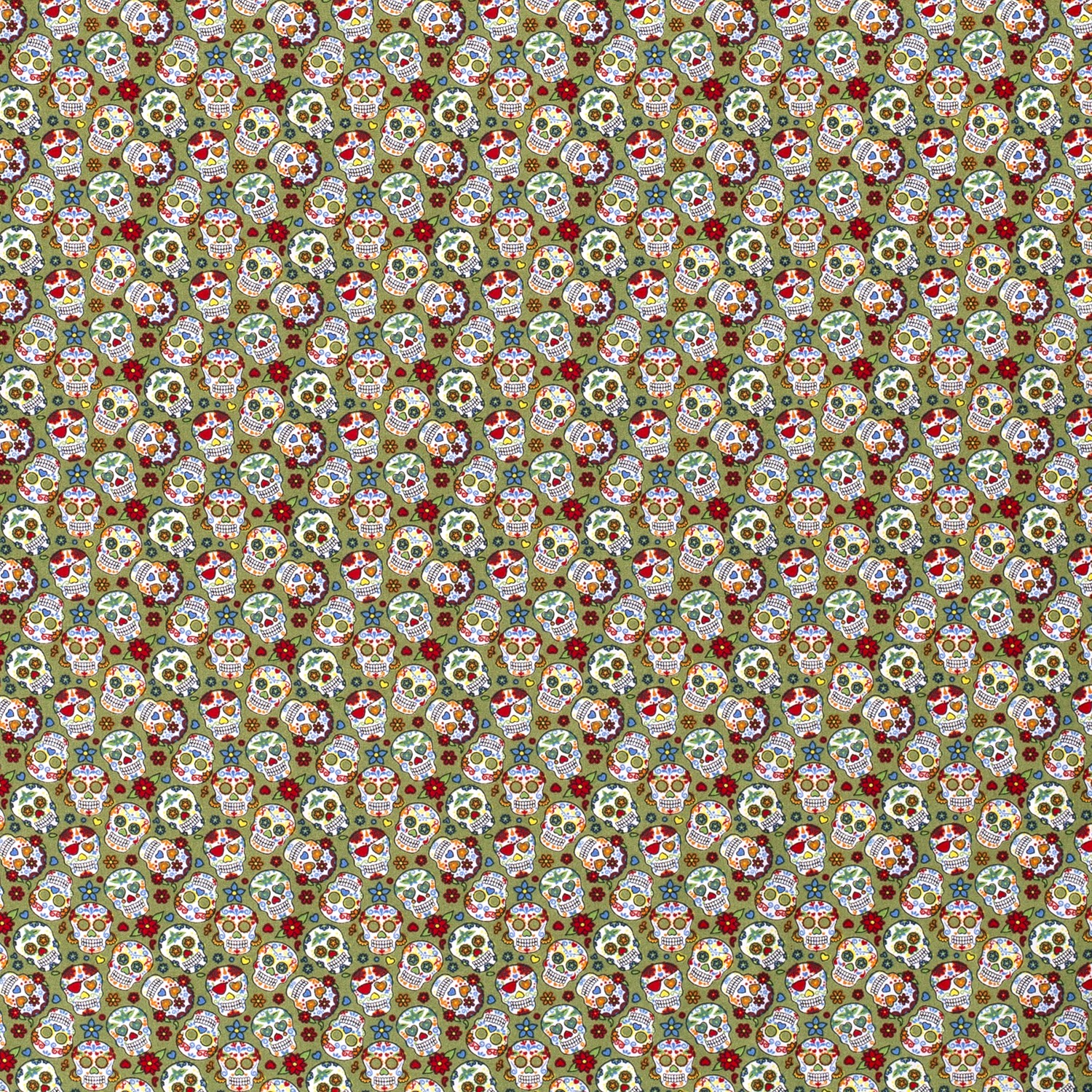 Katoen Kleine bloemen schedels op kaki