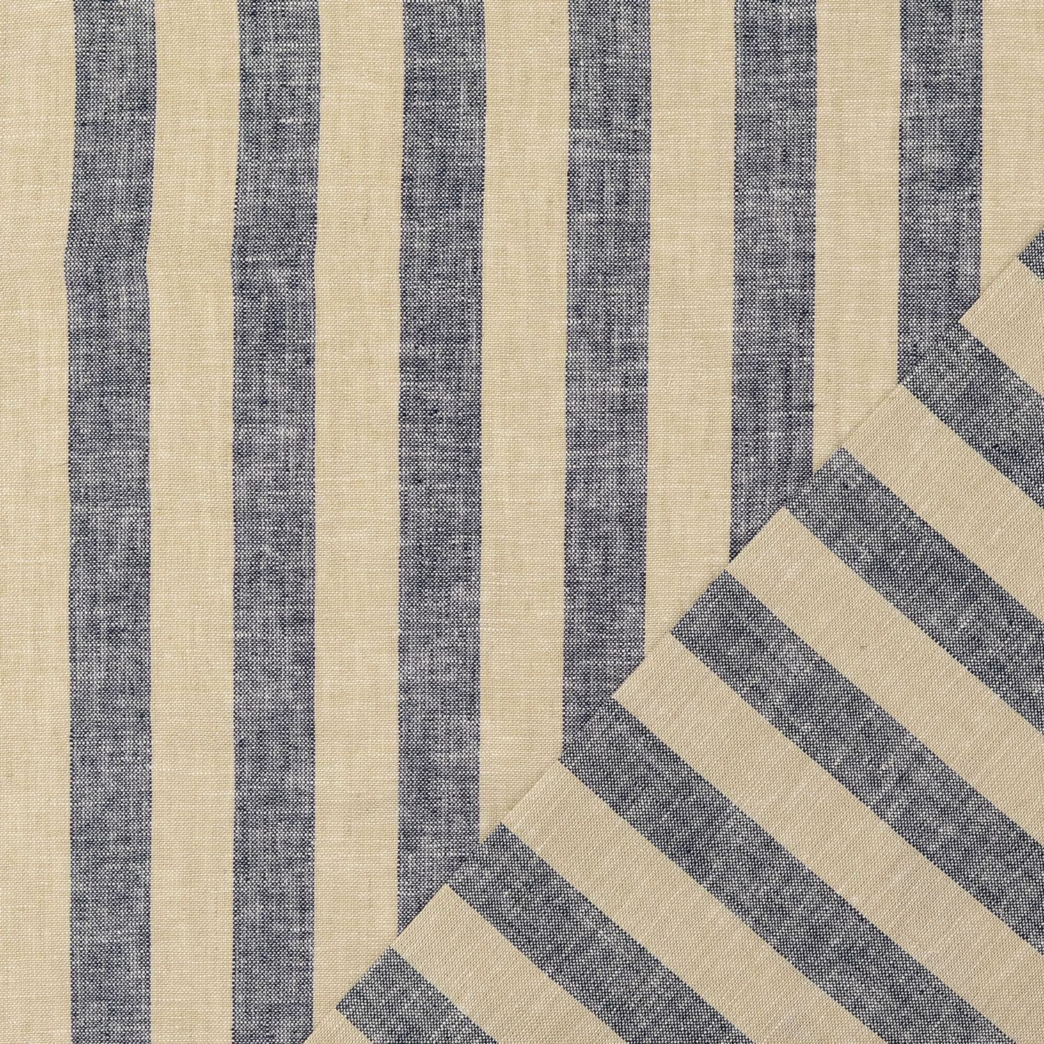 Katoen linnen - Gestreept Beige Navy Garengeverfd