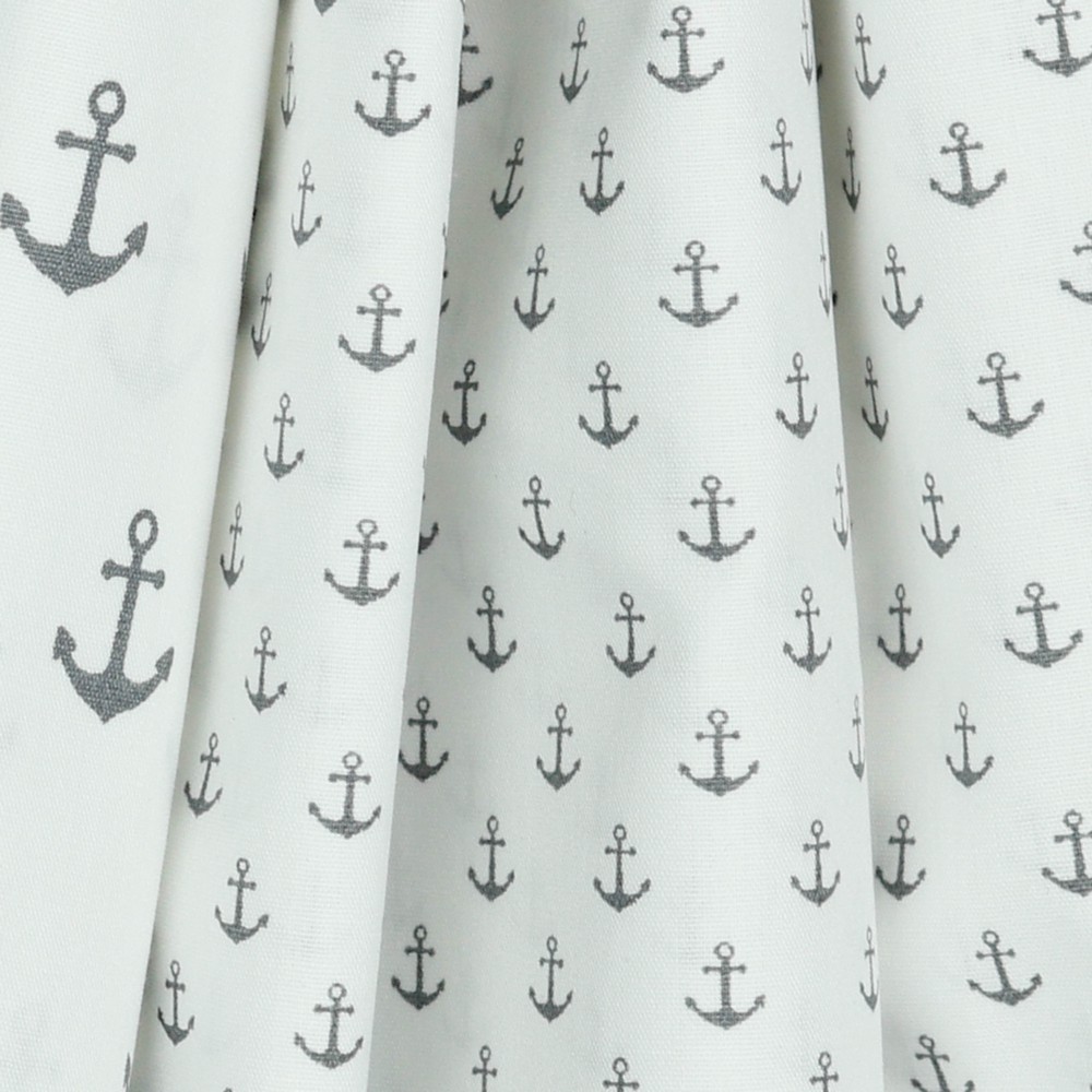 Katoen Maritiem Kleine Ankers Lichtgrijs op Wit