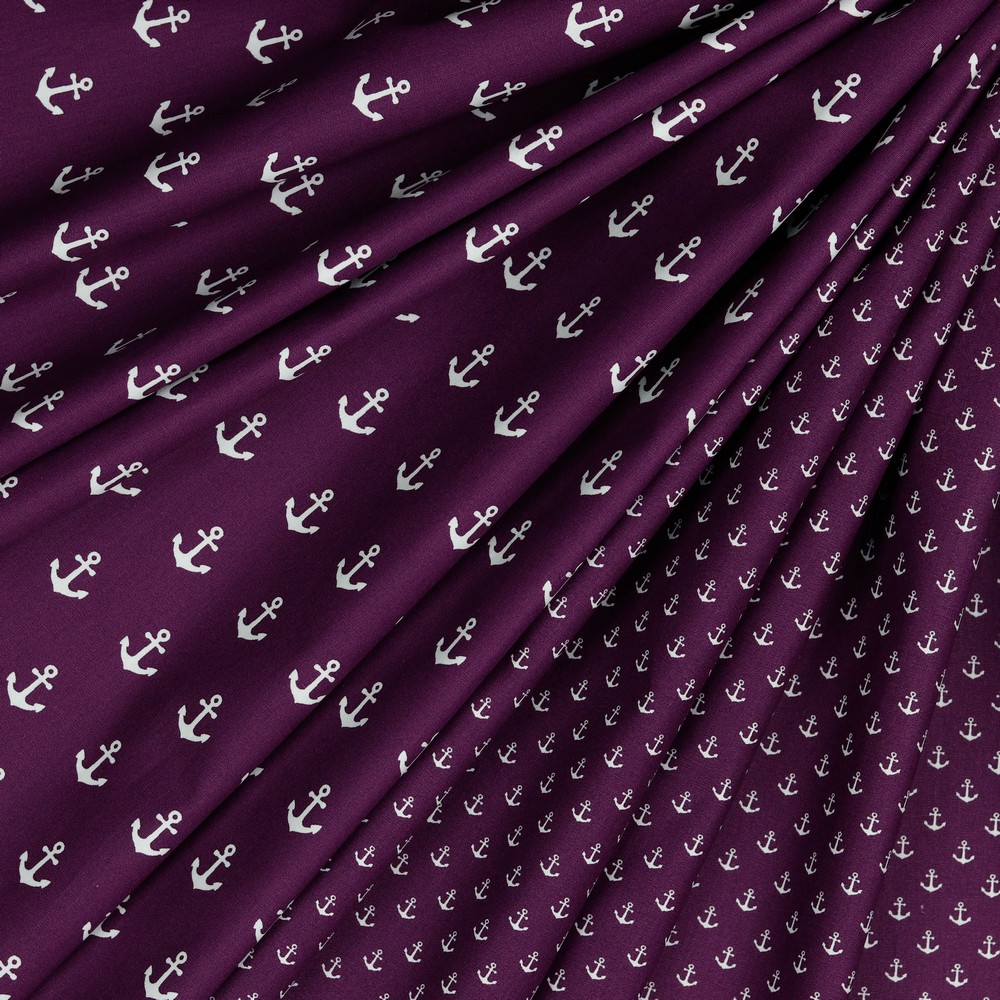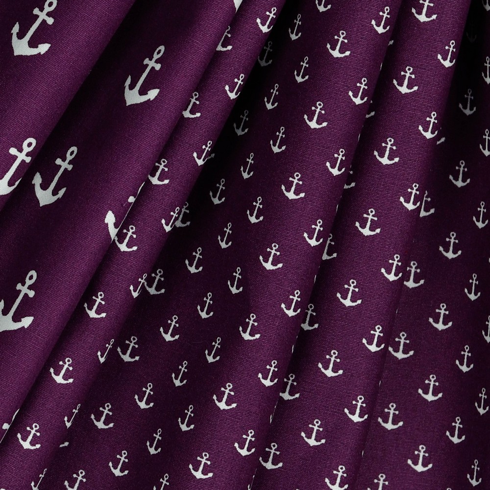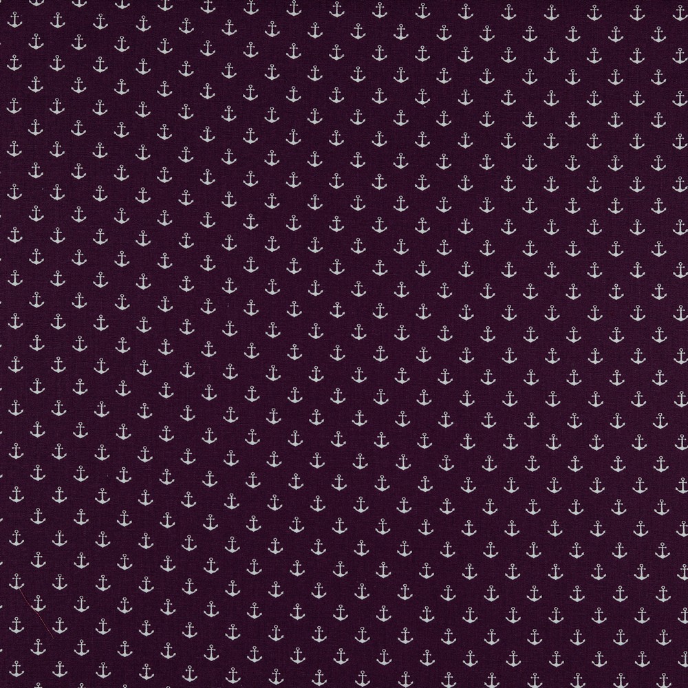 Katoen Maritiem Kleine Ankers Paars