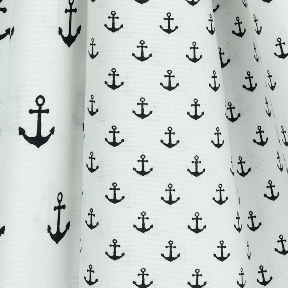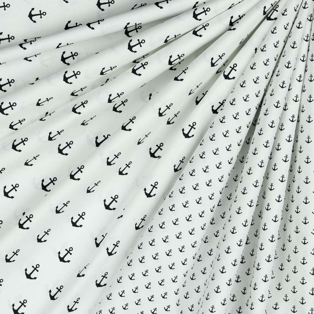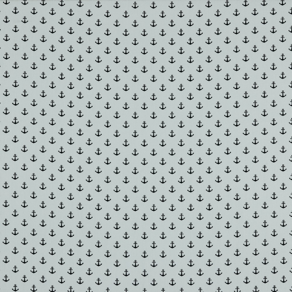 Katoen Maritiem Kleine Zwarte Ankers op Wit