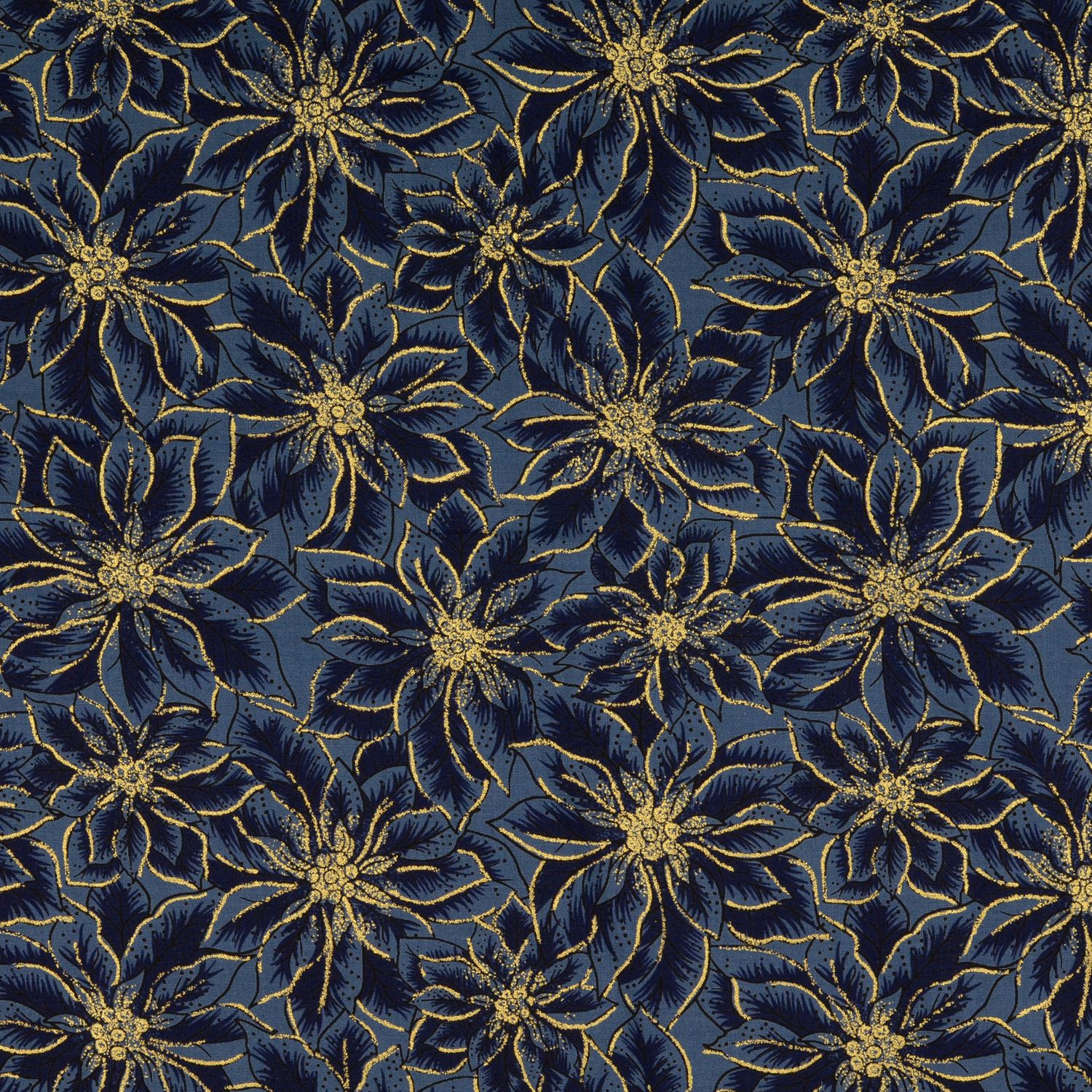 Katoen met gouden print Christmas – Gouden kerststerren op donkerblauw