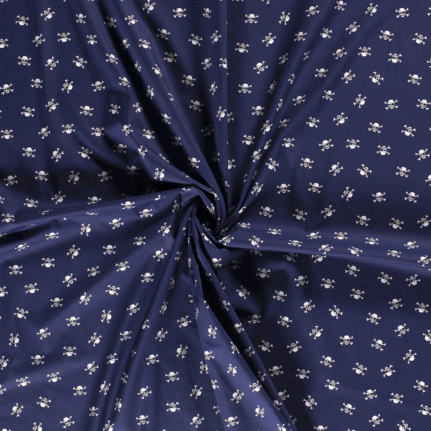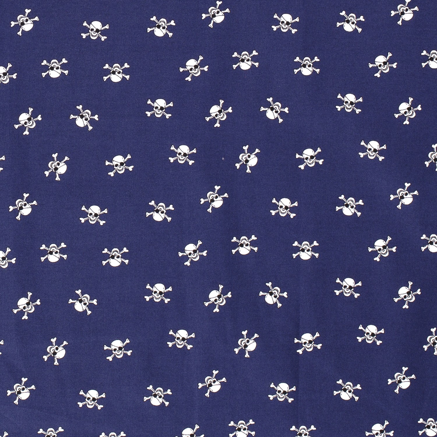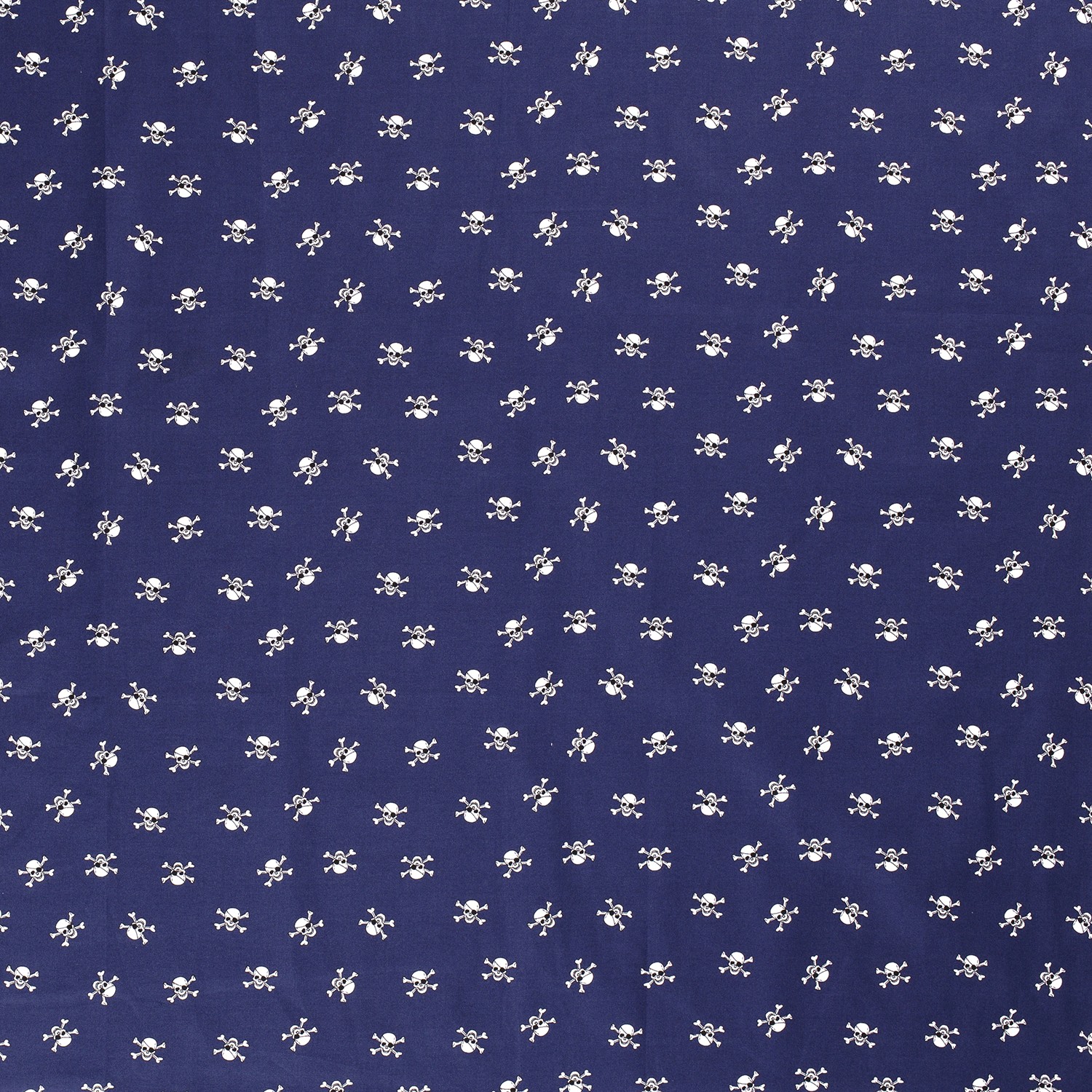 Deze stof is een echte schat voor kleine en grote piratenfans: Op een diep donkerblauwe achtergrond staan witte schedels met gekruiste botten – helder, contrastrijk en heerlijk maritiem. Het klassieke schedelmotief is stoer, maar niet te donker en past perfect bij avontuurlijke naaiprojecten.
