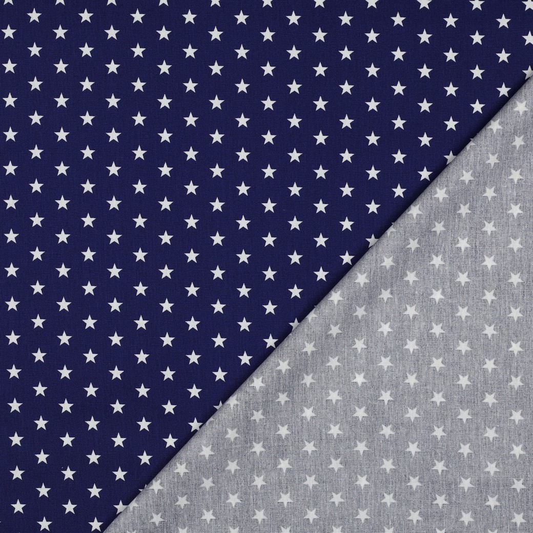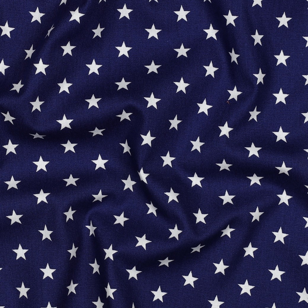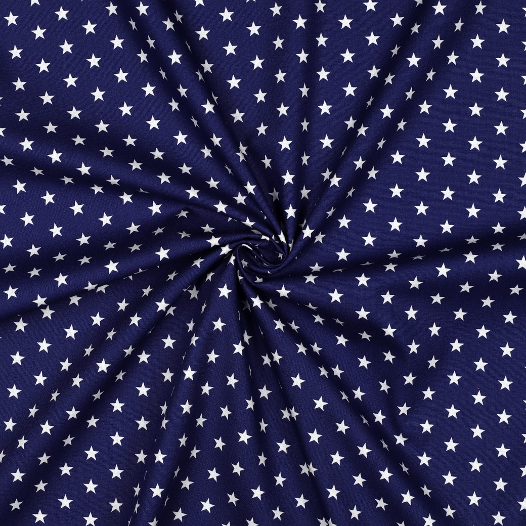 Katoen Popeline - Sterren Koningsblauw Wit