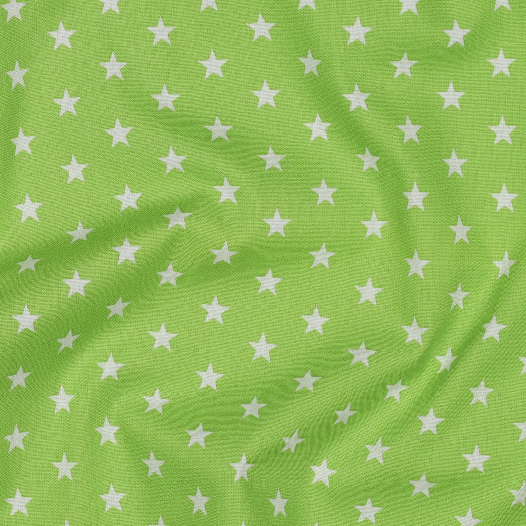 Deze katoenen popeline betovert met een tijdloze sterrenprint in vrolijke, heldere kleuren. Fel turquoise, levendig roze, zonnig geel, een warme bessenkleur en klassiek wit met donkere contrasterende sterren nodigen je uit om te combineren en te dromen.