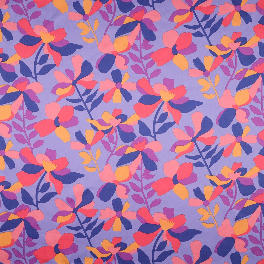 Dompel jezelf onder in de creatieve designwereld van Nerida Hansen: dit elegant glinsterende katoensatijn verleidt met een expressieve digitale print in intense blauwtinten. Fijne, artistieke vormen en speelse details lijken geschilderd en geven de stof een moderne, bijna grafische touch.