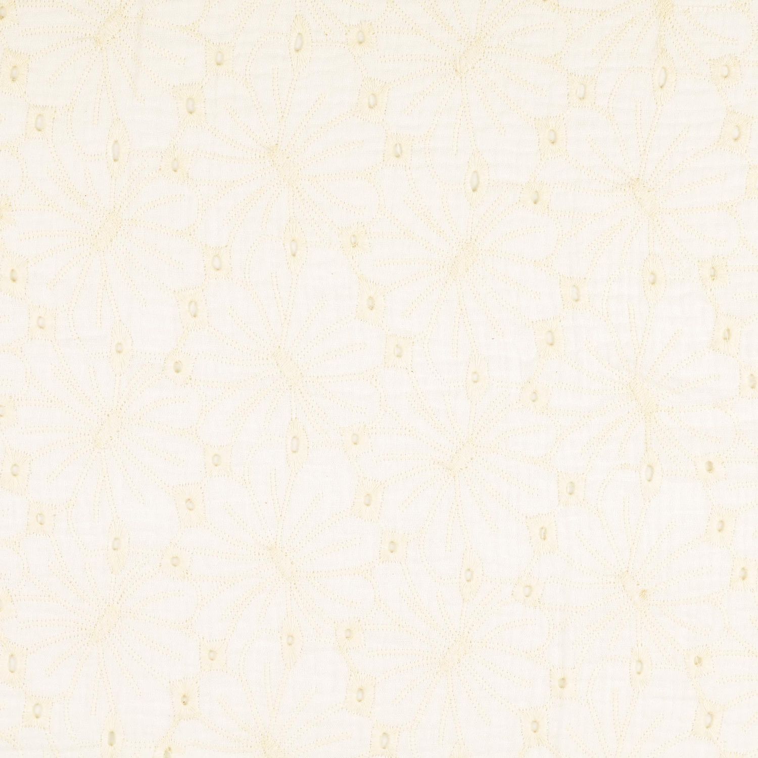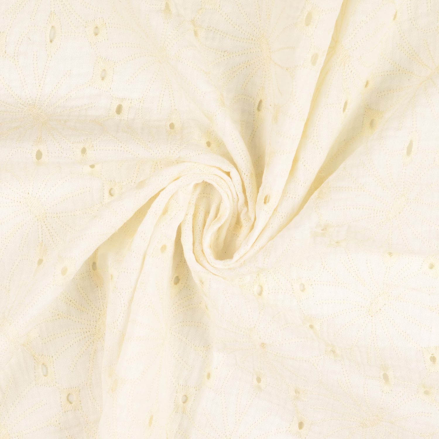 Katoenen mousseline - Double Gauze bloemen geborduurd ecru