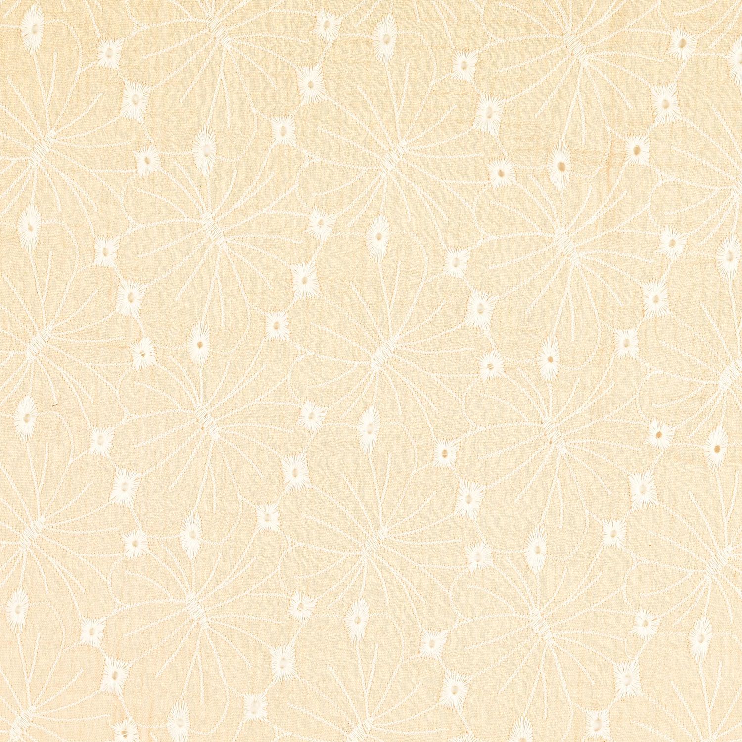 Katoenen mousseline - Double Gauze geborduurde bloemen beige