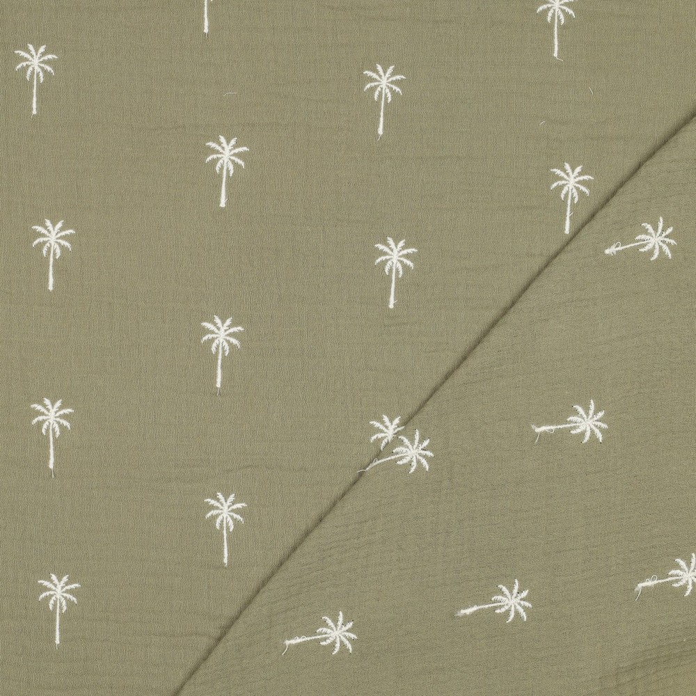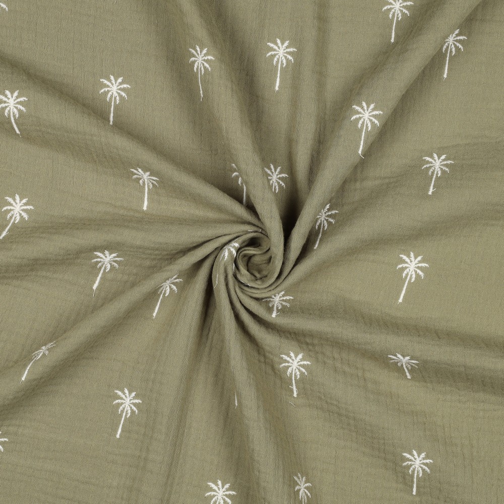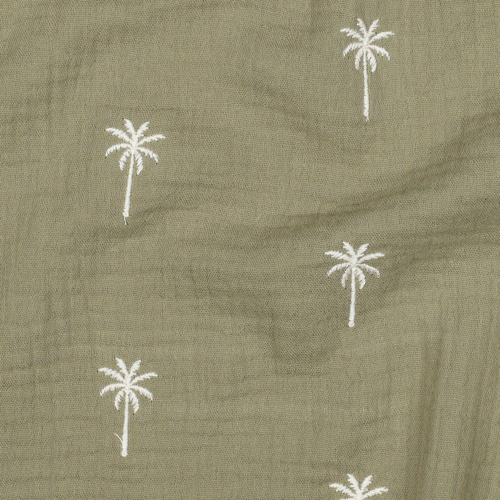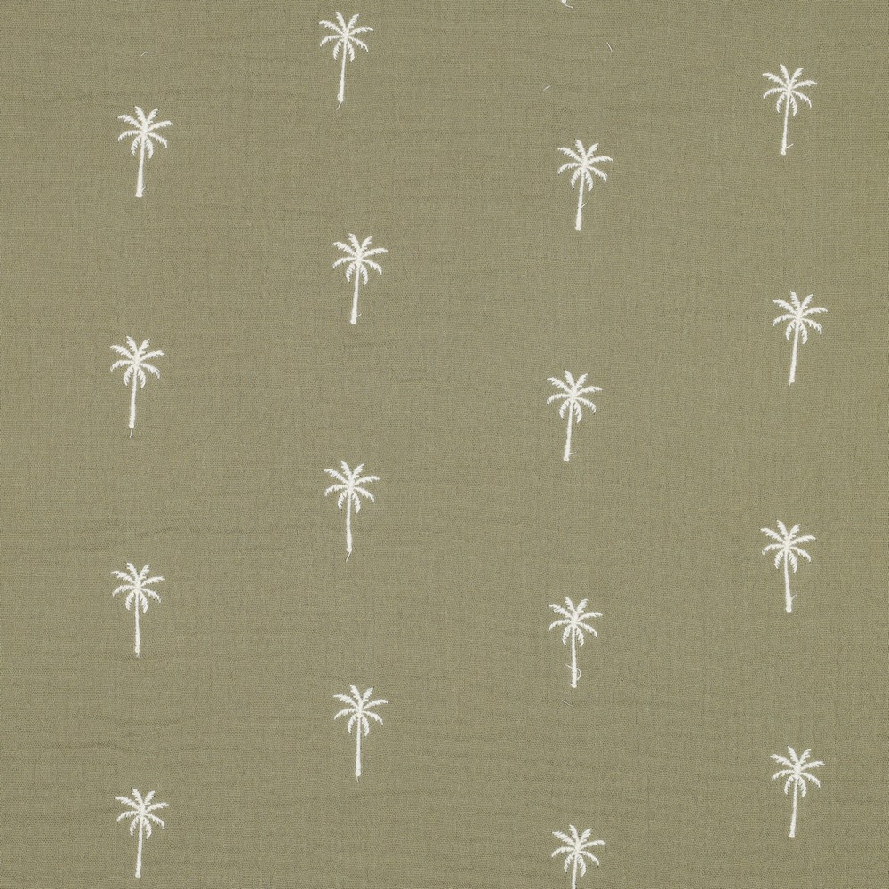 Katoenen Mousseline - Double Gauze met Geborduurde Palmbomen Groen