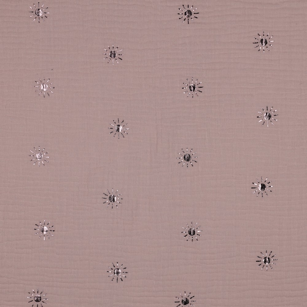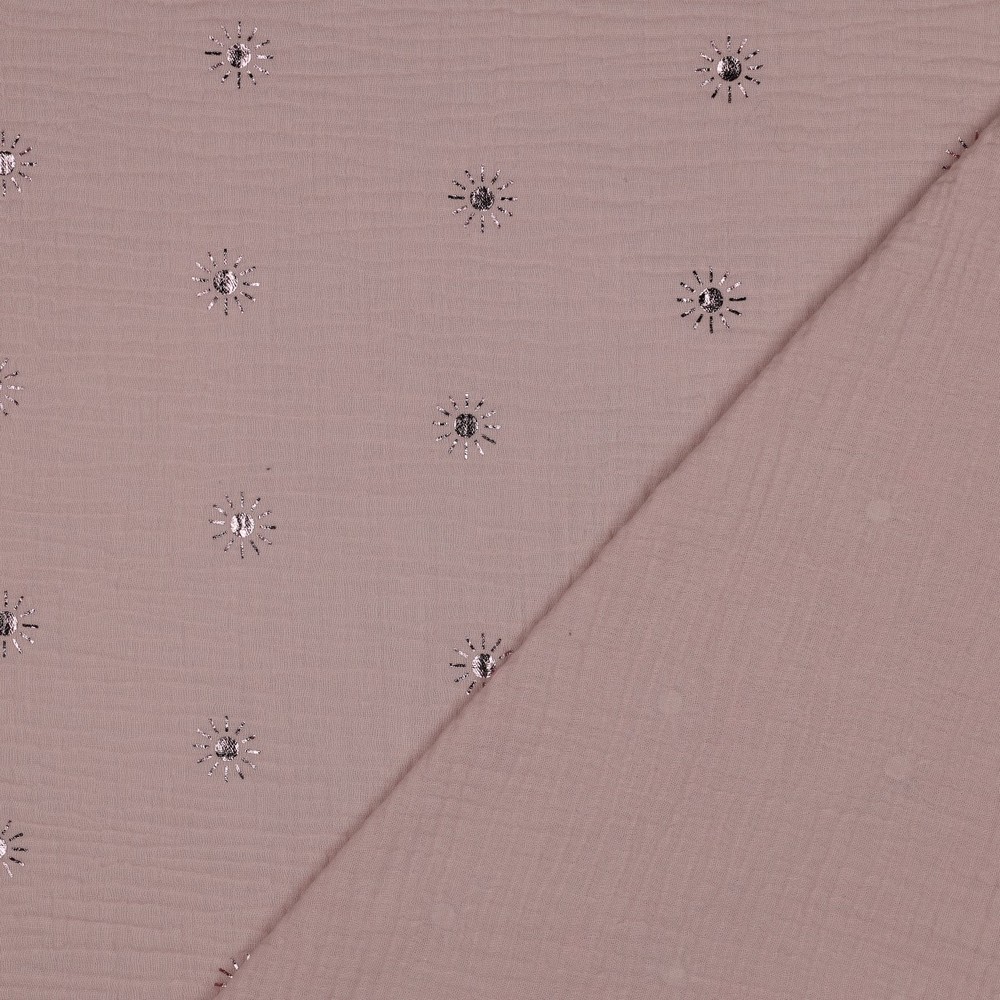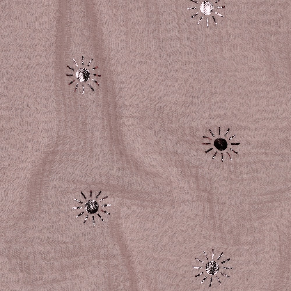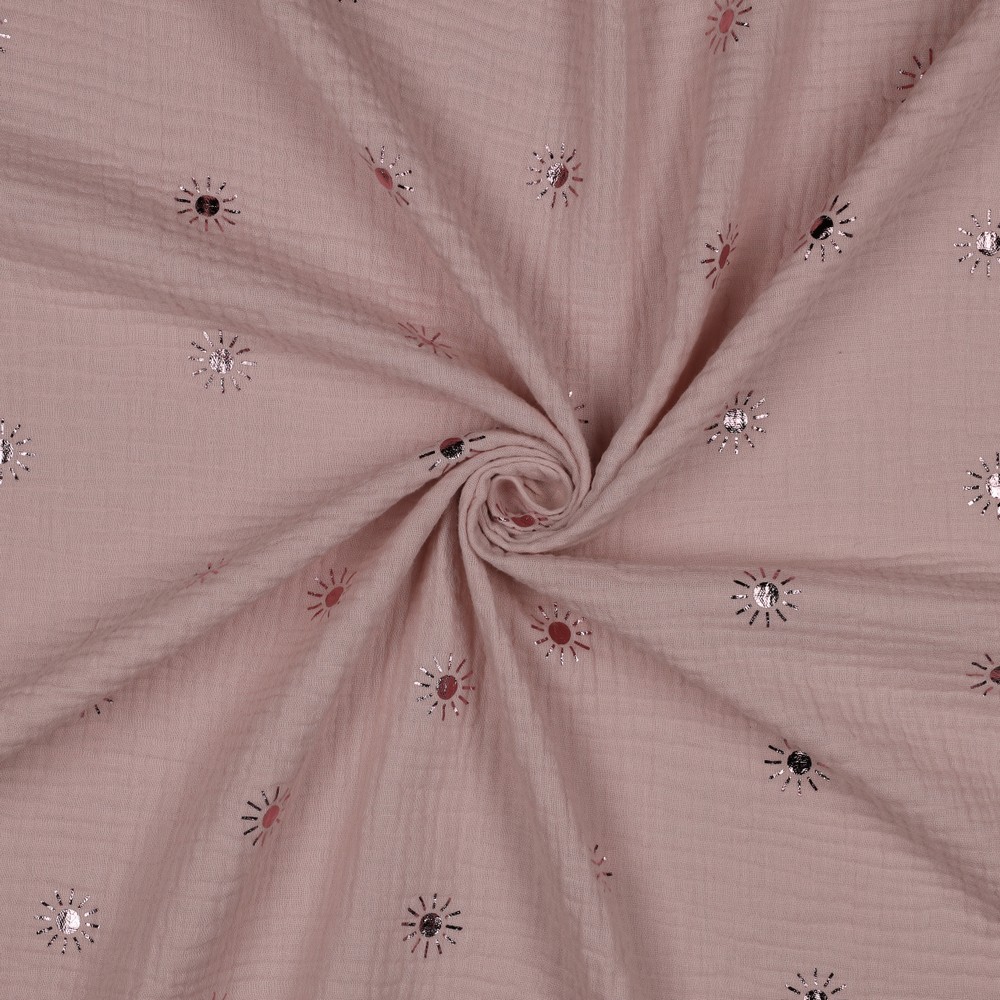 Het harmonieuze samenspel van poederroze en glanzende folie maakt deze mousseline de perfecte stof voor iedereen die houdt van een romantische, moderne en licht speelse look. Ideaal voor favoriete stukken die zowel comfortabel als stijlvol zijn.
